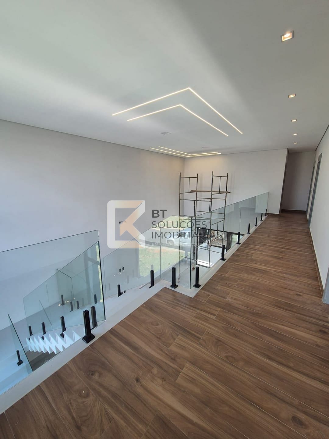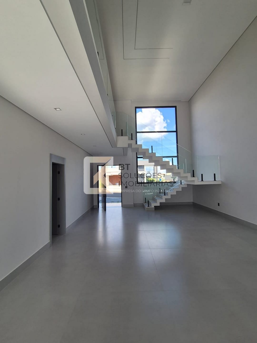 Sala de estar e jantar com pé-direito alto, iluminação em fita de LED e excelente iluminação natural