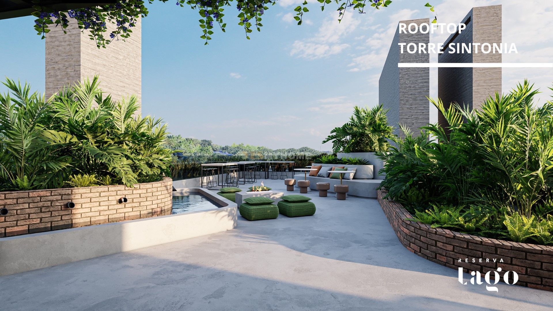 Piscina externa tipo Resort, Piscina interna, Salão de festas, Churrasqueira, Tiki Bar, 4 Rooftops, Co-working e salas de reunião, Bicicletário, Espaço kids, Mercado de conveniências, Lavanderia, Salão de jogos, Fire place, Petplace, Playground, Beauty center, Ferramentaria, Academia, Quadra poliesportiva, Fitness funcional, Portal de acesso com portaria, Central de delivery, vagas para visitantes.