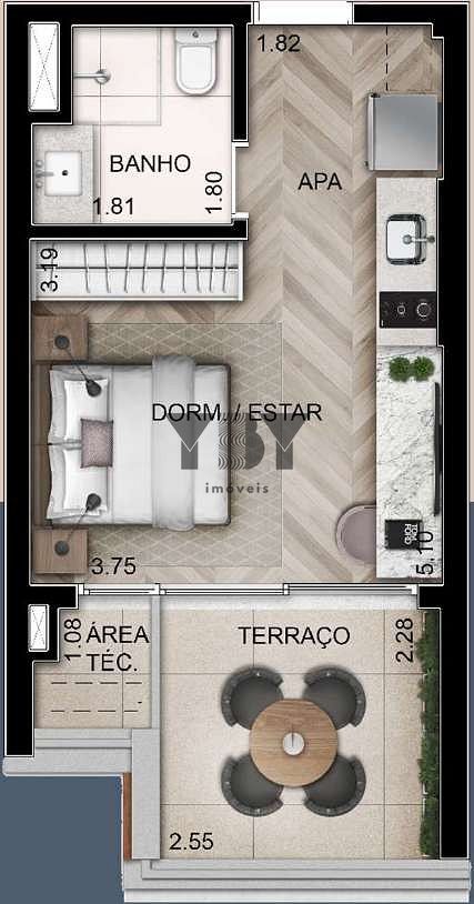 Studio à Venda com 1 quartos, 31 m² por R$ 554.282
