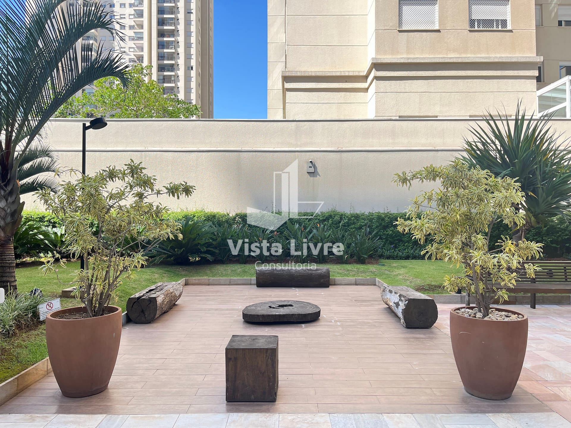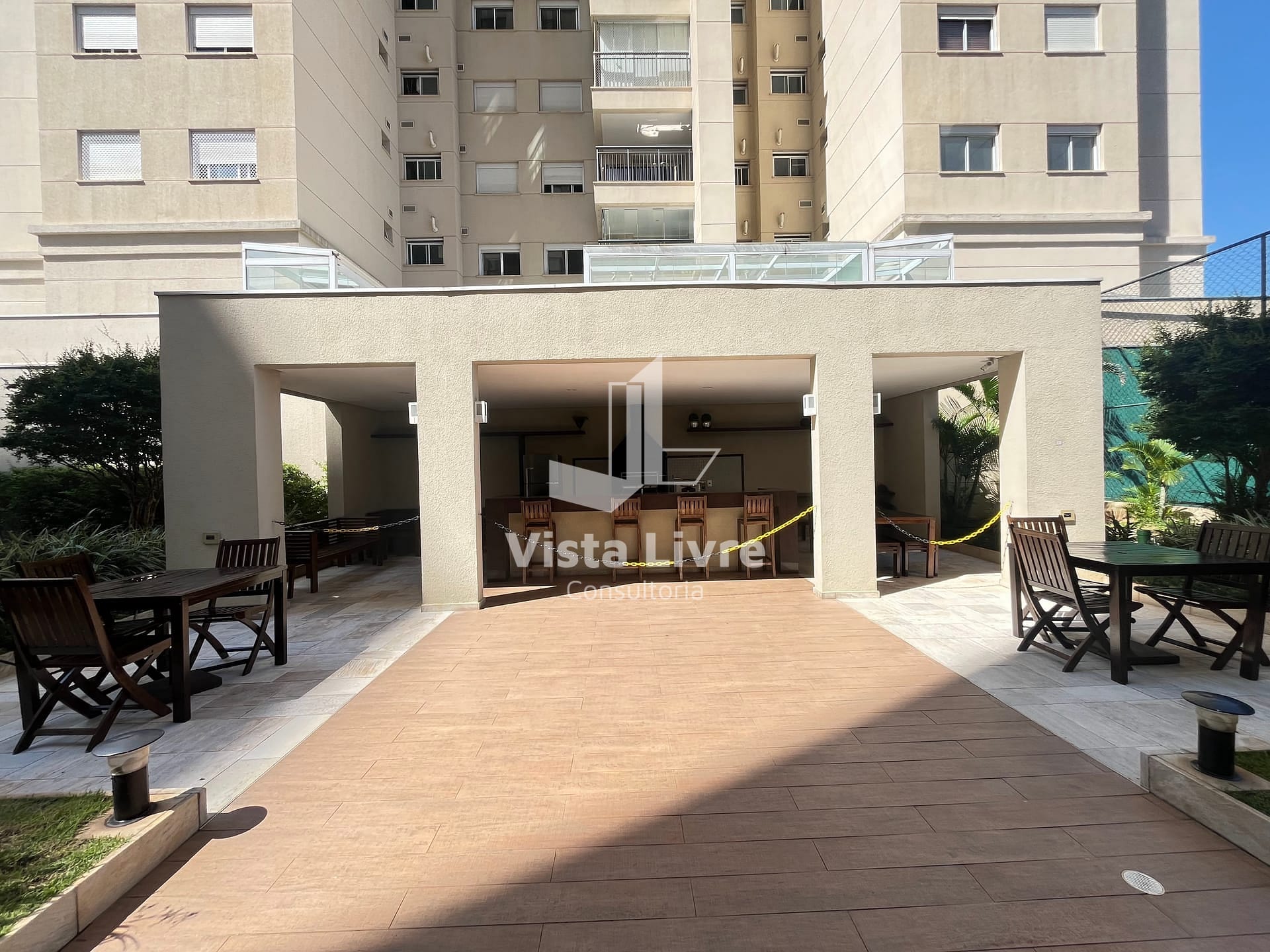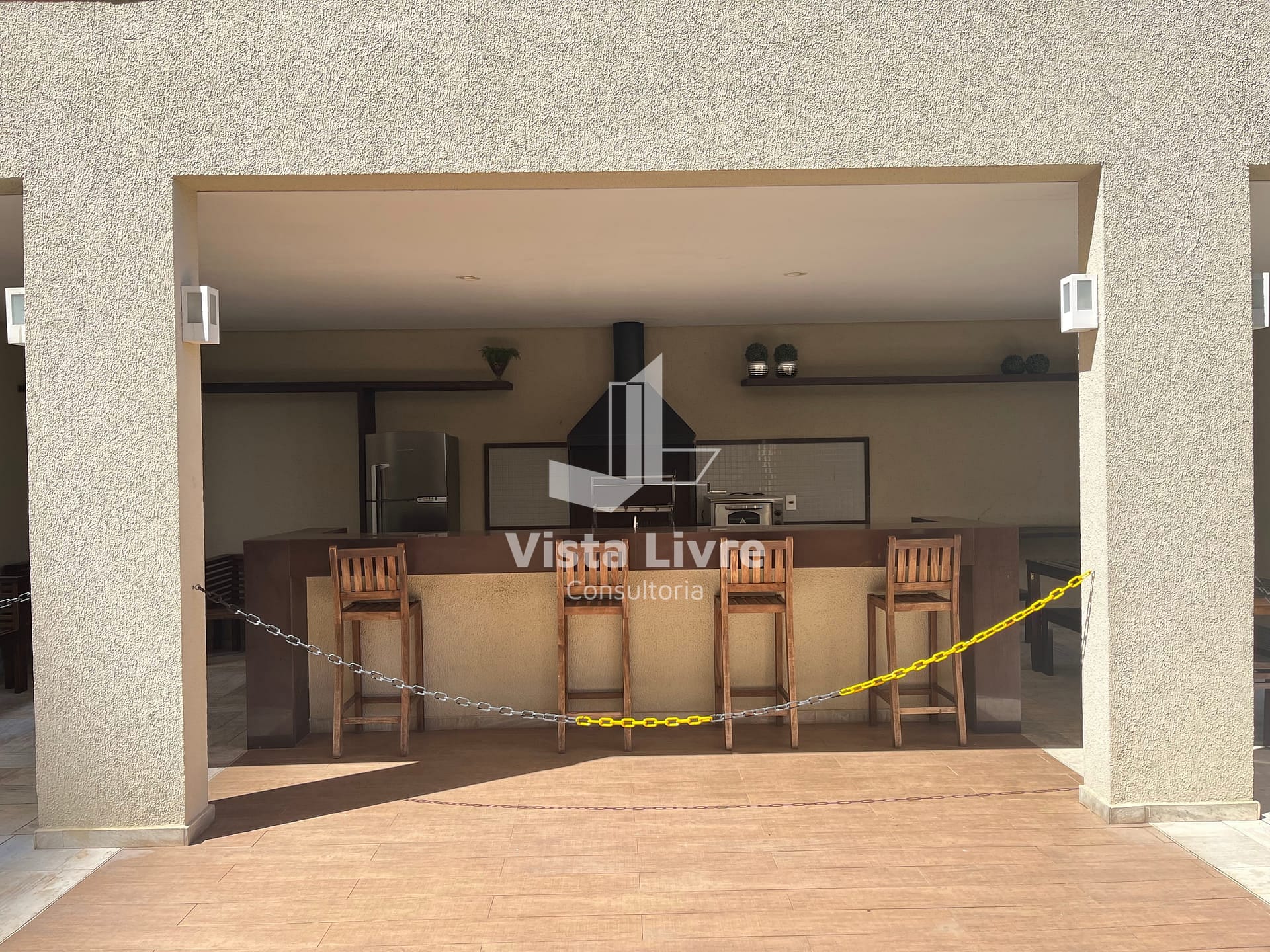 A sala tem Móvel planejado com 3 gavetões + prateleiras e TV Samsung 50 giratória com vista para todos os ambientes do apartamento e sofá de 3 lugares, em seguida A Varanda com churrasqueira à carvão, mesa para 5 lugares e pia com 4 portas de armário + espaço planejado para embutir uma lava e seca e fechada em vidro