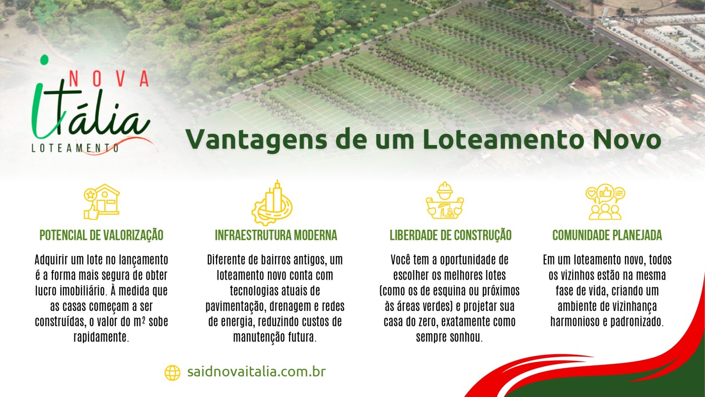 Nova Itália coloca você perto de tudo o que resolve a vida rápido. É um pé na faculdade, outro no shopping e o hospital logo ali se precisar. A rotina aqui flui melhor porque você não perde tempo atravessando a cidade para encontrar um banco, uma farmácia ou aquele barzinho depois do expediente. O terreno tem 150 m², com 7,5 metros de frente, o tamanho exato para projetar uma casa inteligente, fácil de manter e com a sua cara. Sobra espaço para os fundos e ainda sobra tempo para aproveitar a pista de caminhada ou o campo de futebol do bairro quando bater aquela vontade de desopilar.