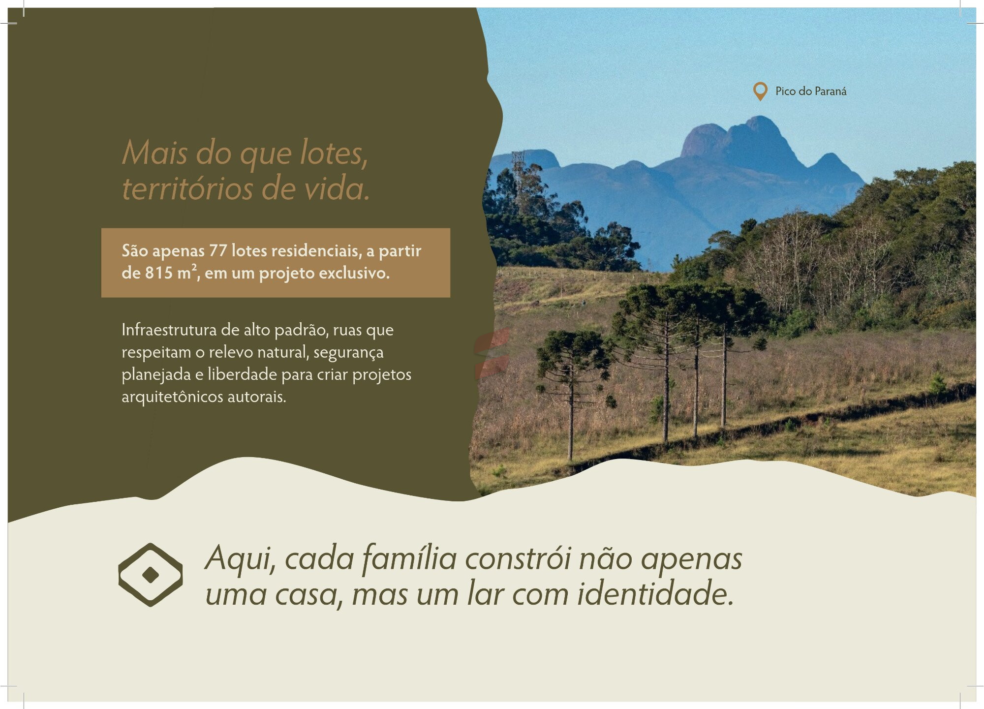 Terrenos - Condomínio Floresta Angá - Jardim KarlaConstrua a casa que você sempre imaginou em um condomínio cercado pela natureza. Excelentes terrenos localizados em Pinhais, em uma região tranquila e em constante valorização. O residencial está situado no início da Estrada Ecológica, próximo ao Parque das Águas, oferecendo uma combinação perfeita entra contato com a natureza, qualidade de vida e fácil acesso aos principais pontos da cidade. Com metragens bem distribuídas, os lotes oferecem o espaço ideal para quem deseja construir uma casa personalizada em condomínio ou para investidores que buscam uma área com grande potencial de valorização.Sobre os Terrenos:Lotes com metragens variadas;Topografia favorável para construção;Zoneamento residencial;Localização em condomínio fechado;Fácil acesso ao centro de Pinhais e comércios da região;Condomínio em região de expansão e valorização;Ambiente tranquilo e com contato com a natureza;