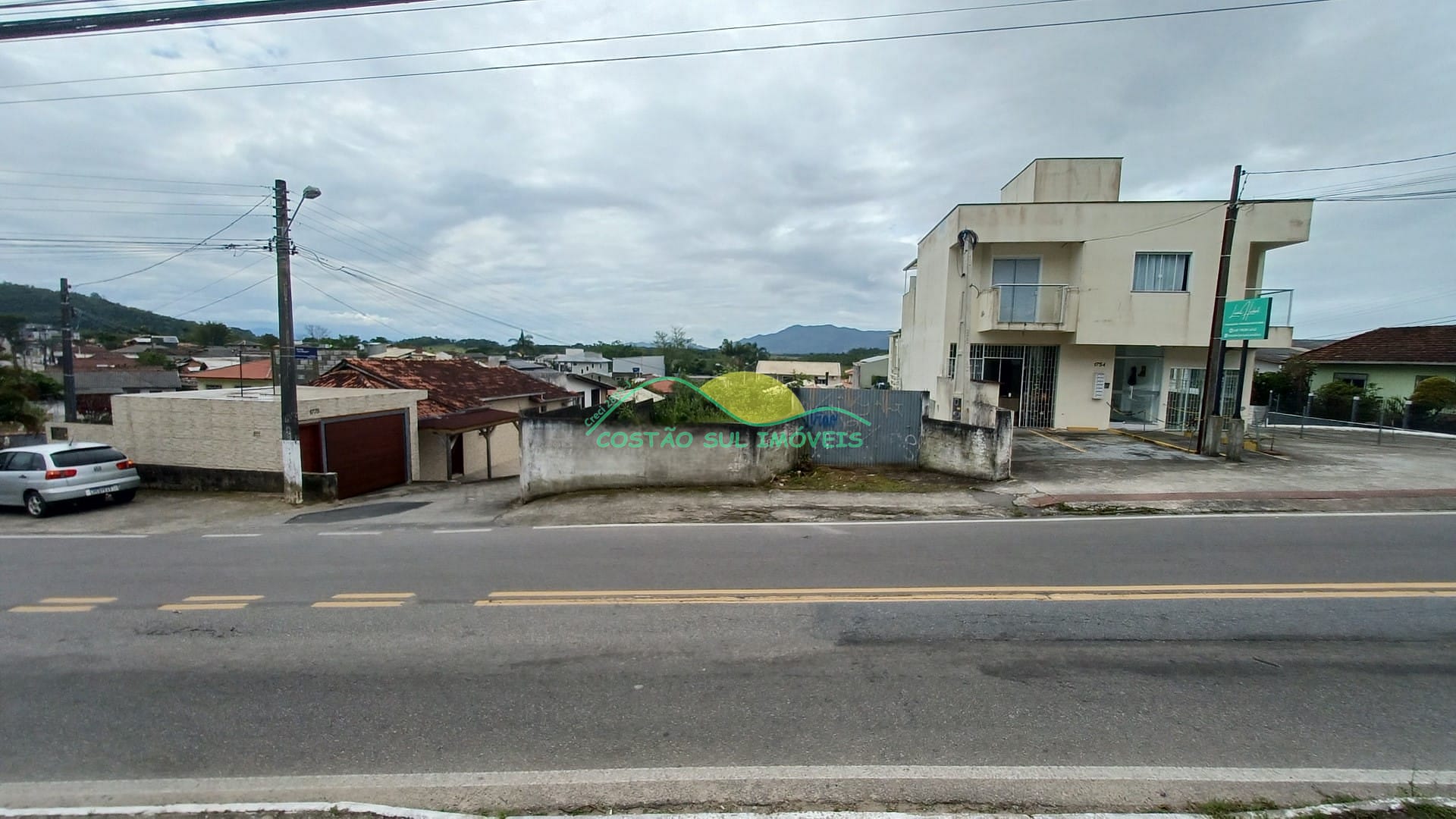 Terreno de esquina com 378,00m² em aclive para a Rodovia (Frente: 11,80m; Fundos: 12,10m; LE: 31,40me LD: 31,80m), na principal via de acesso ao bairro, com zoneamento AMS-3.5 (Área Mista de Serviços, 3 pavimentos e 50% de utilização do terreno).