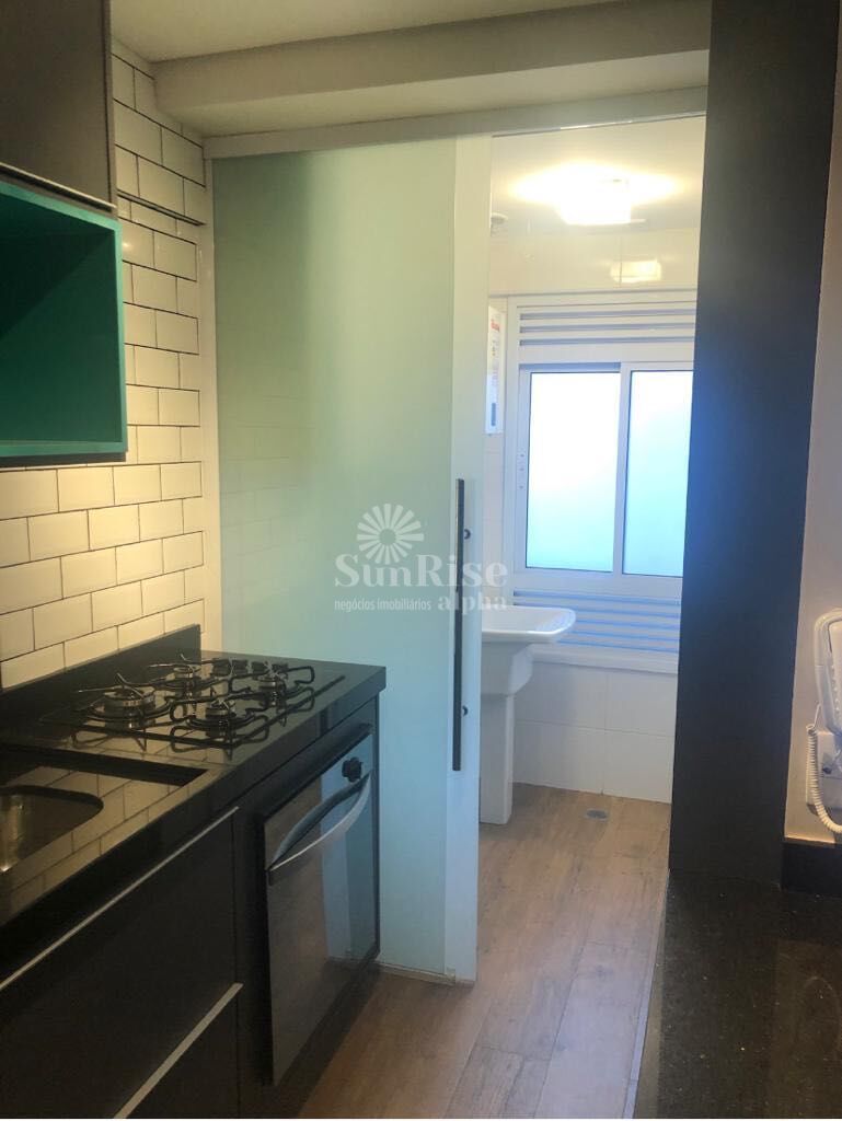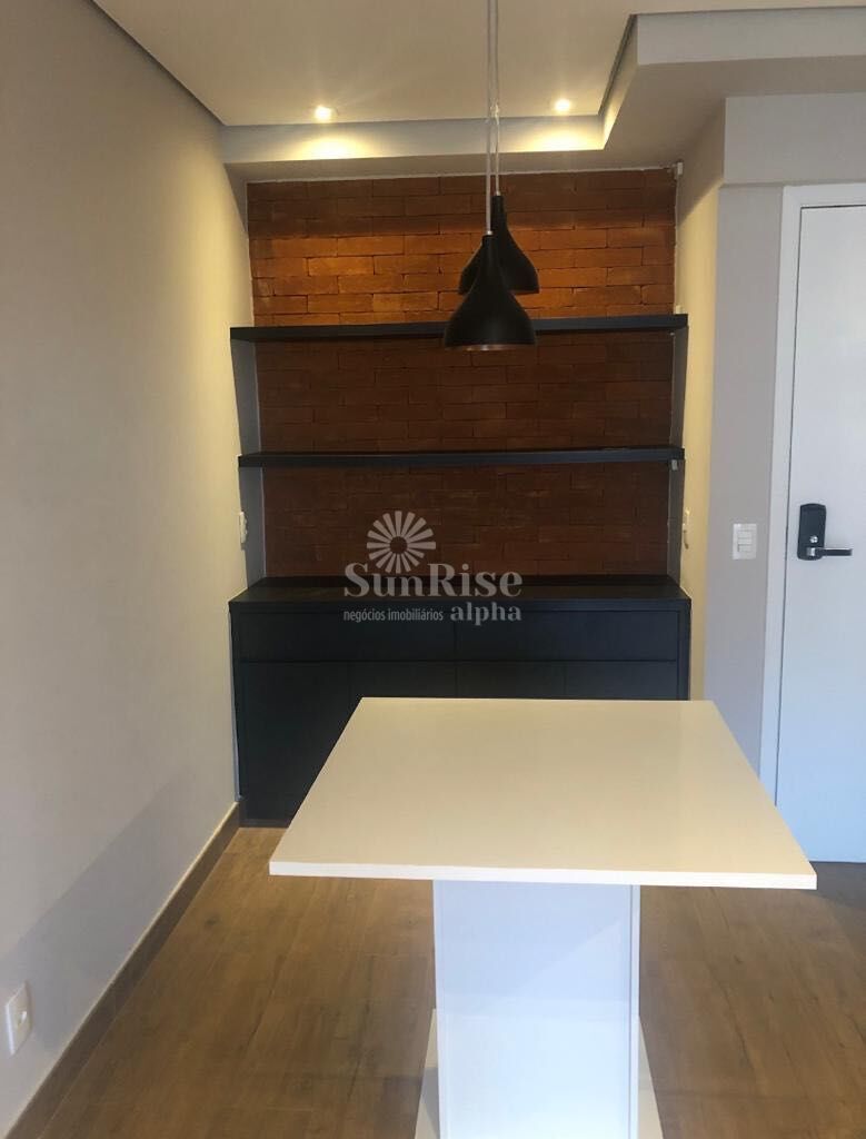 Lindo apartamento em andar alto com 1 suíte, living para 2 ambientes, cozinha americana, lavabo, ar-condicionado, armários planejados, geladeira, microondas, cooktop, forno e coifa, além de 1 vaga de garagem na melhor localização de Alphaville. Conta ainda com piso em porcelanato Portobello, revestimento com tijolinhos Lepri, conceito cozinha americana, forro de gesso, iluminação e closet, pendentes e luminárias, super completo e ainda fácil acesso à Castello Branco.
