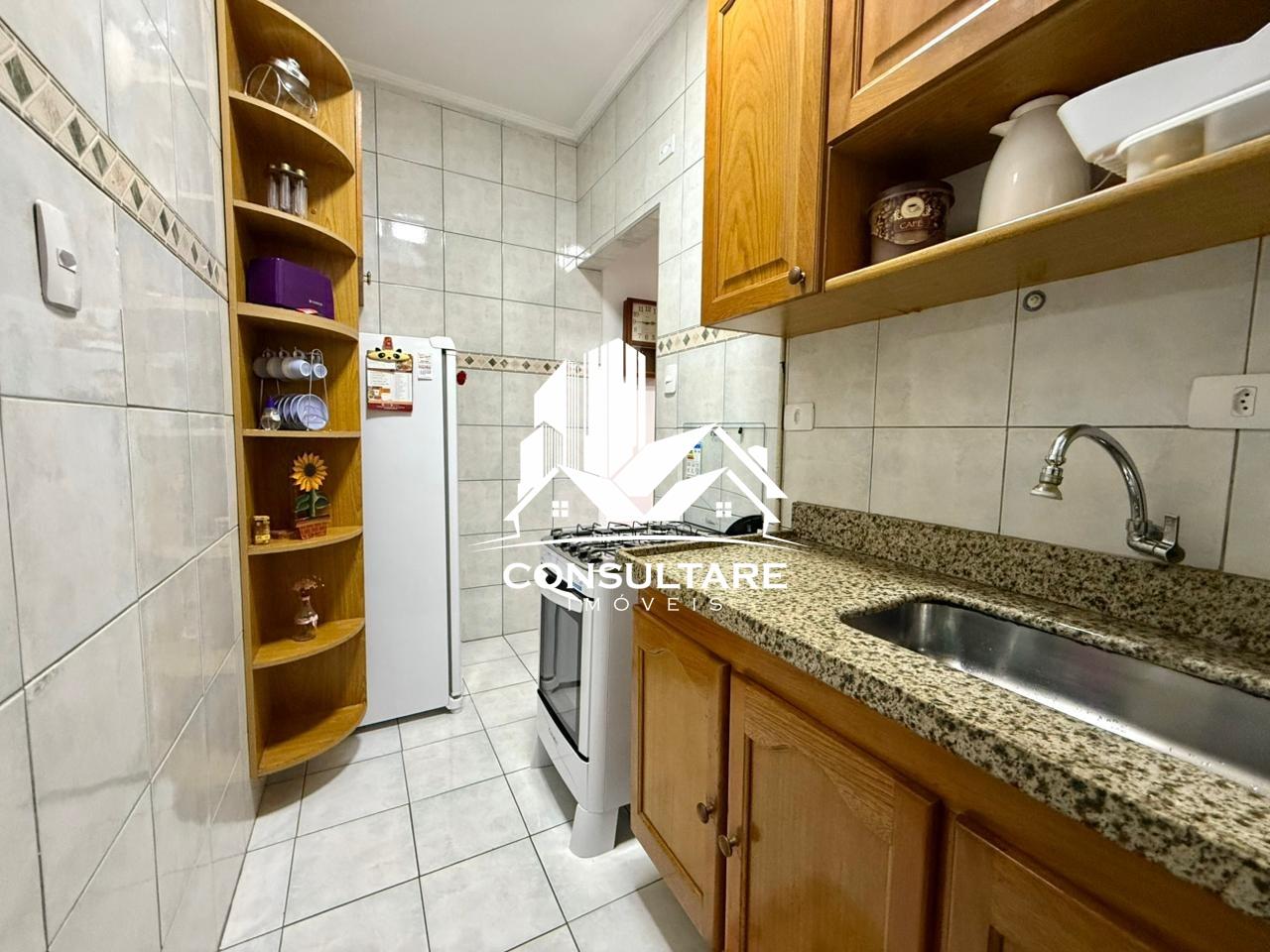 - Cozinha planejada com armários e área de tanque