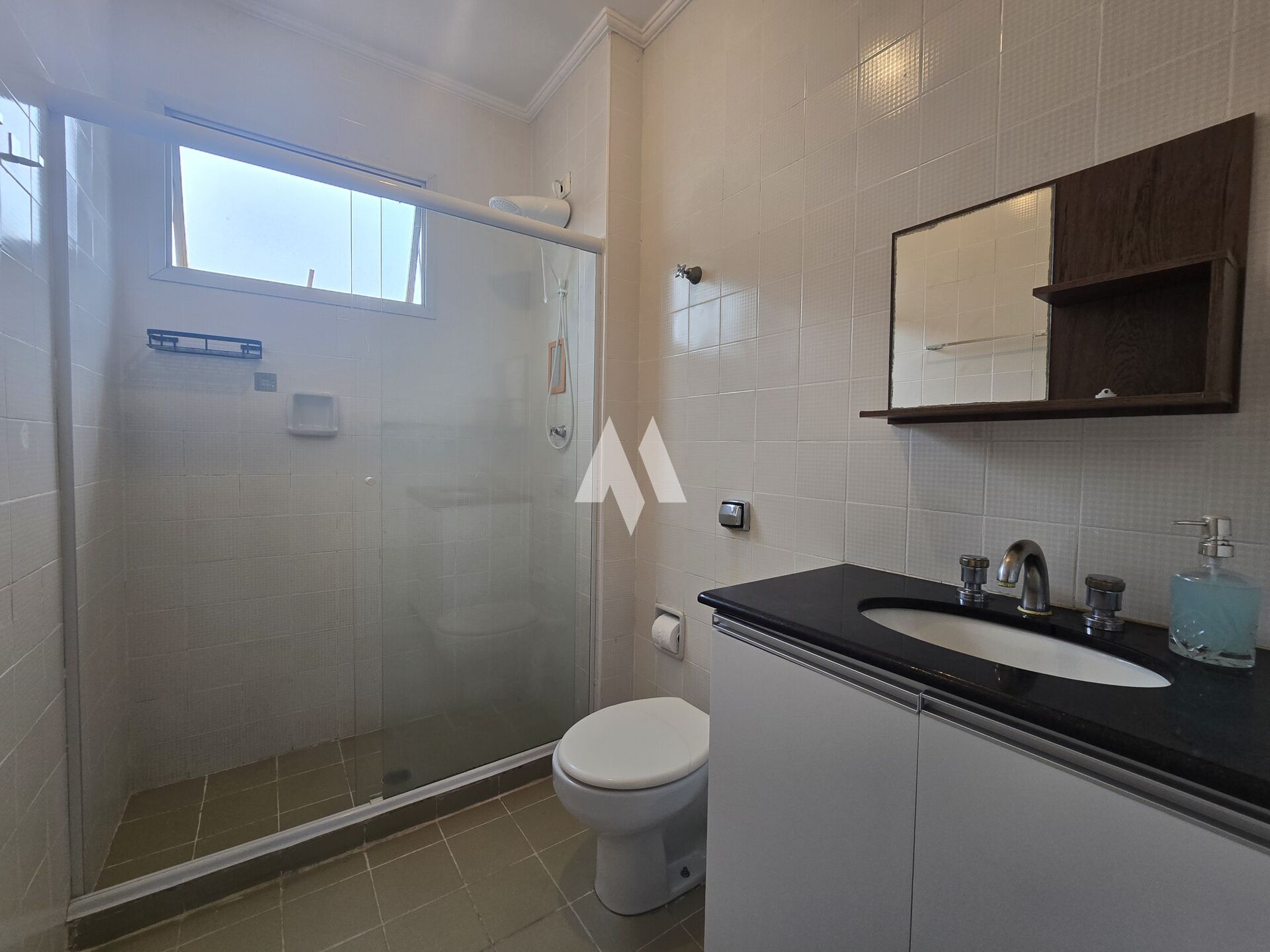 O apartamento conta com ar condicionado de parede, ventilador de teto, armário no dormitório, armário na cozinha, armário no banheiro, box de vidro e piso cerâmico. Unidade sem vaga de garagem.