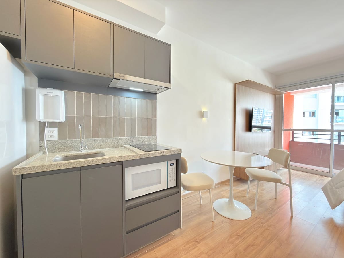 Apartamento mobiliado em localização estratégica no bairro Butantã! Possui 26 m2 e 1 quarto[s]. Para facilitar o seu dia a dia, o imóvel já vem com tudo pronto para você morar.