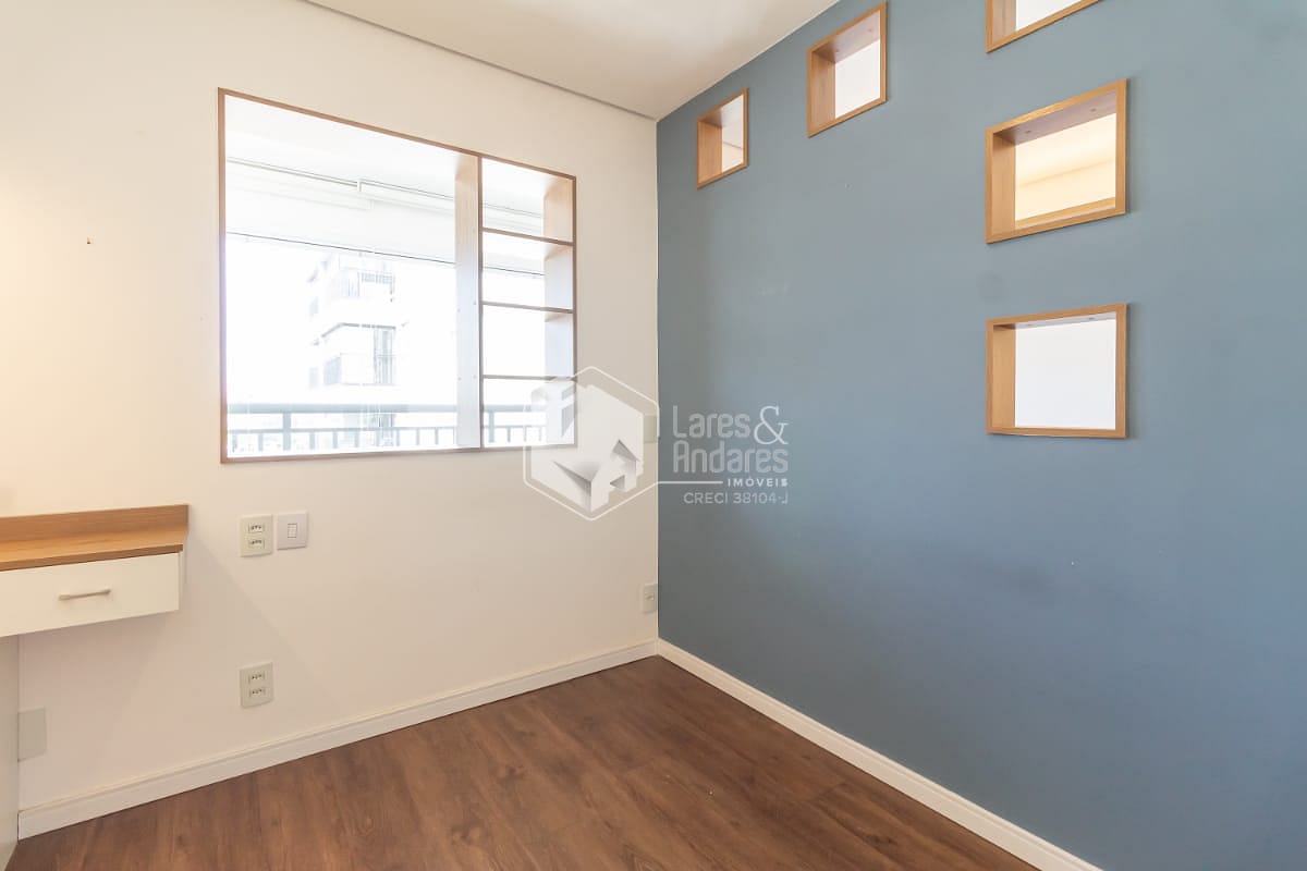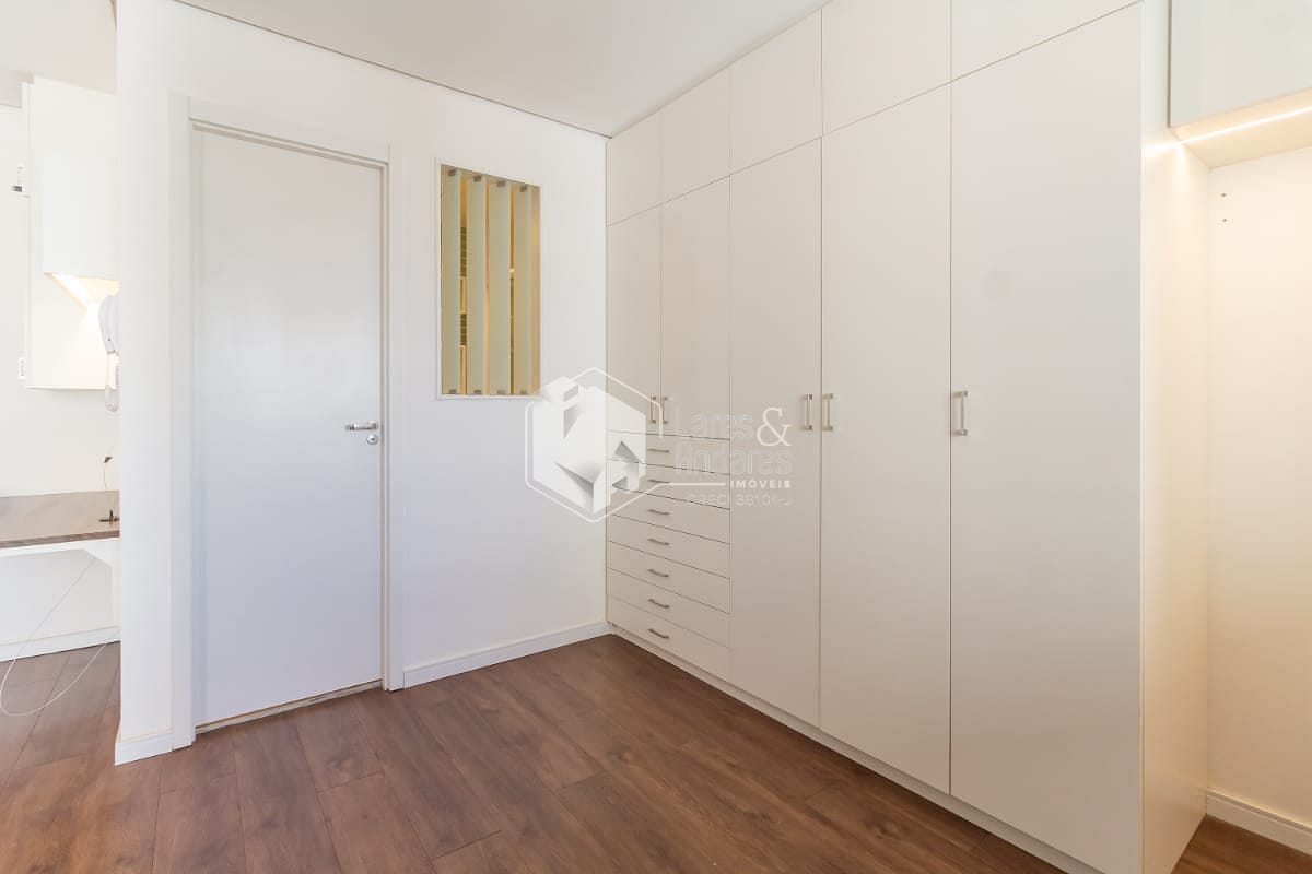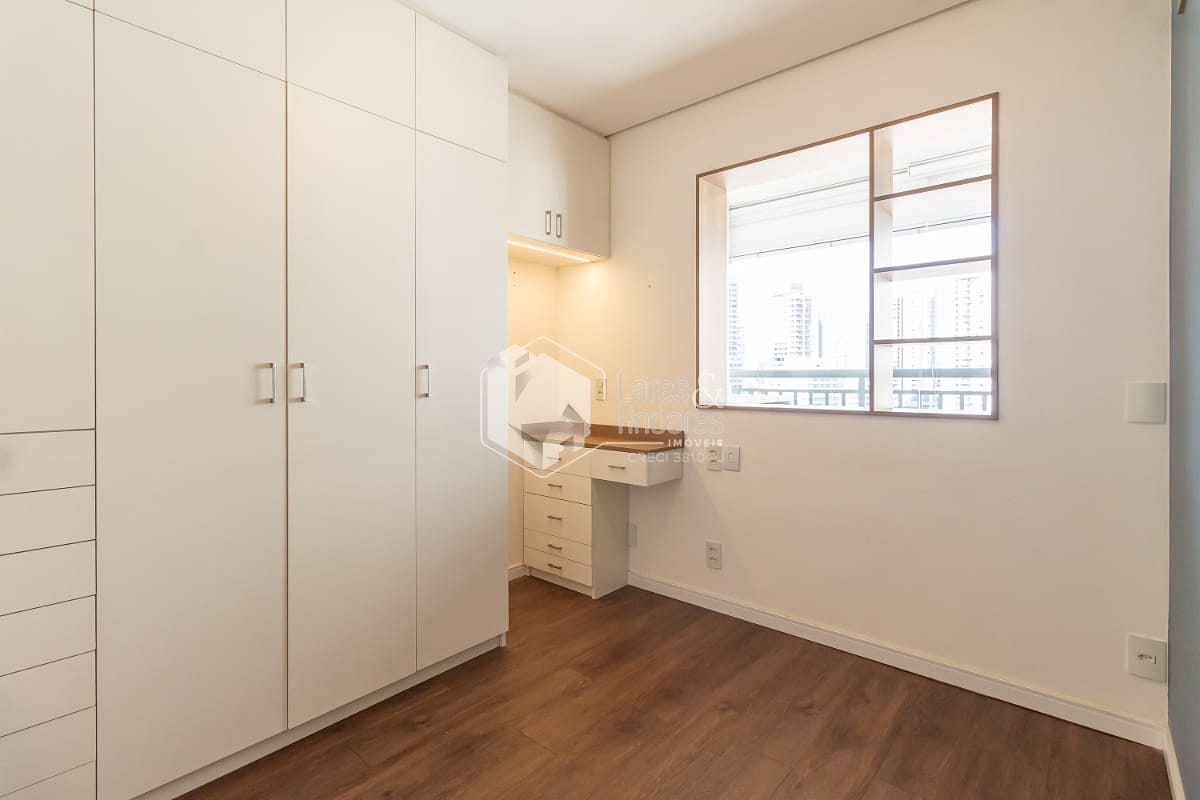 Dormitório com armário embutido, garantindo otimização de espaço e praticidade no dia a dia;