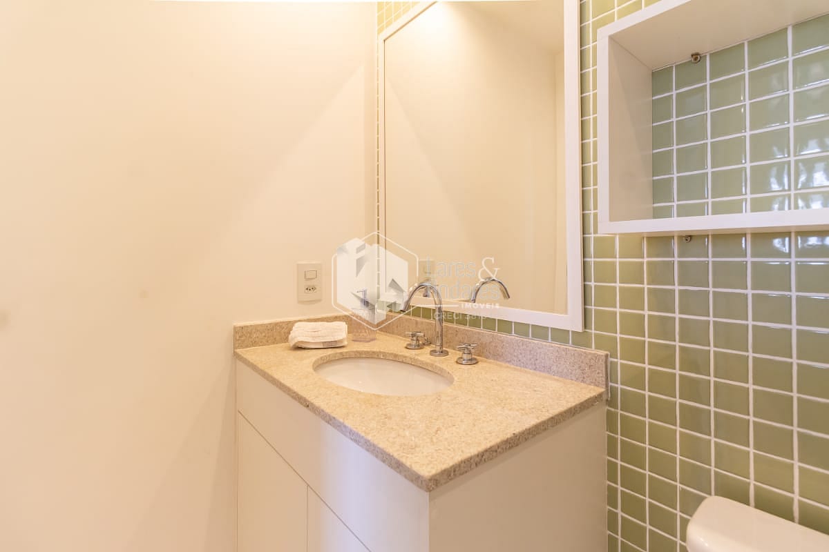 Banheiro com revestimentos de alta qualidade, box de vidro e design moderno;