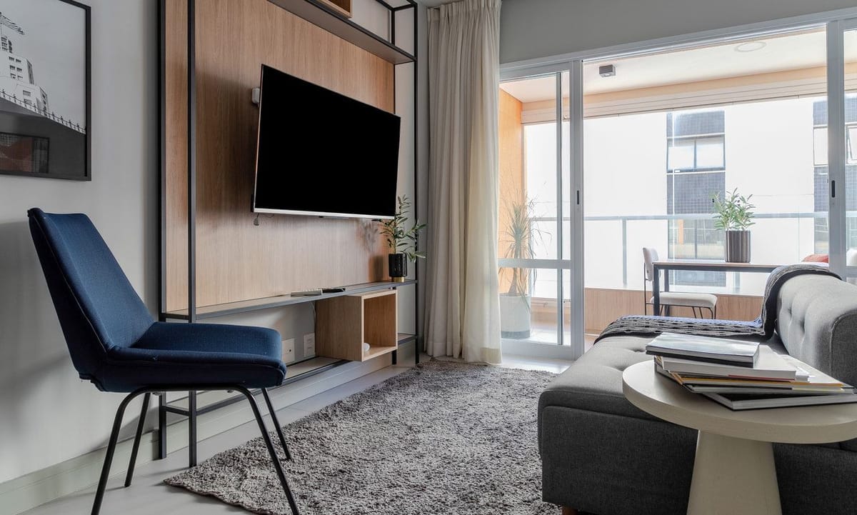 Apartamento mobiliado em localização estratégica no bairro Brooklin! Possui 42 m2 e 1 quarto[s]. Para facilitar o seu dia a dia, o imóvel já vem com tudo pronto para você morar.