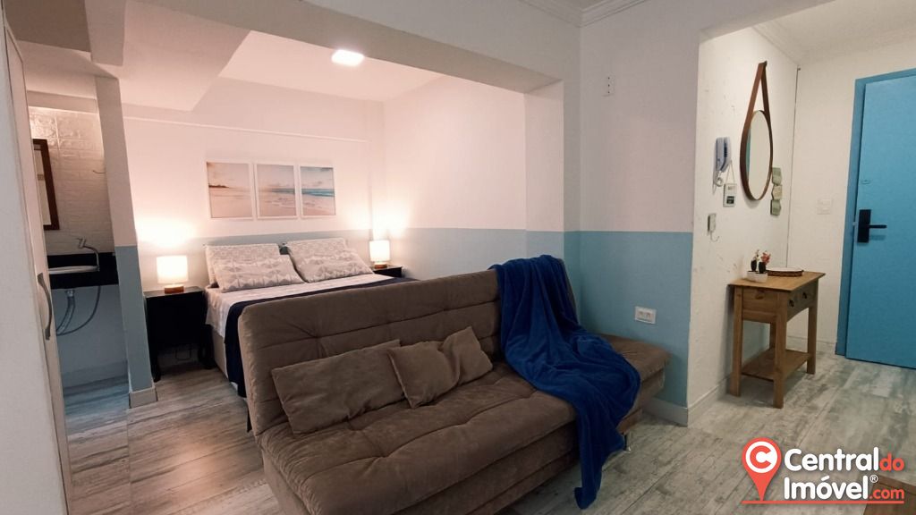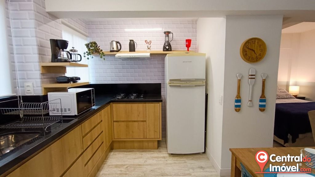 Este apartamento de 35 m² dispõe de 01 dormitório, sala de estar e jantar integradas, além de uma cozinha completamente equipada, decorada e com móveis planejados, banheiro social e 01 vaga de garagem no térreo.