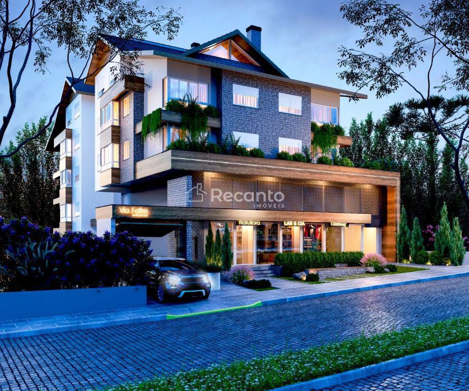 Apartamento de 1 dormitório suíte no centro de Canela!: Recanto Imóveis oferece em Canela: Apartamento ainda em fase de construção com 76.26m², 1 dormitório suíte, cozinha com churrasqueira, área de serviço, lavabo, mezanino, espera para split e calefação, pisos em laminado e porcelanato e 1 vaga coberta de garagem. Venha conferir, condomínio completo e em localização privilegiada no Centro de Canela!----------------------