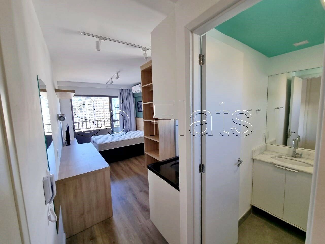 Apartamento no modelo Studio mobiliados, com cozinha equipada, fast Wi-fi e cama.