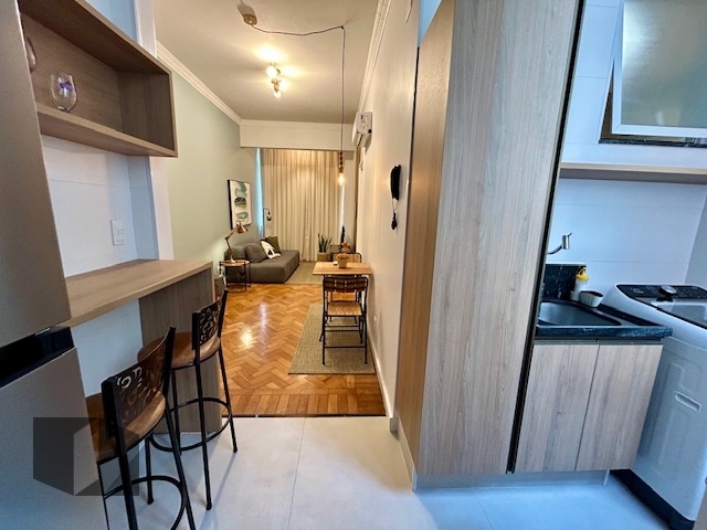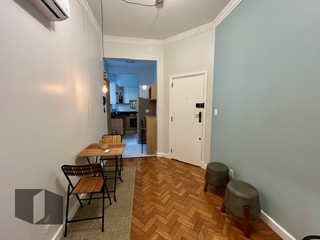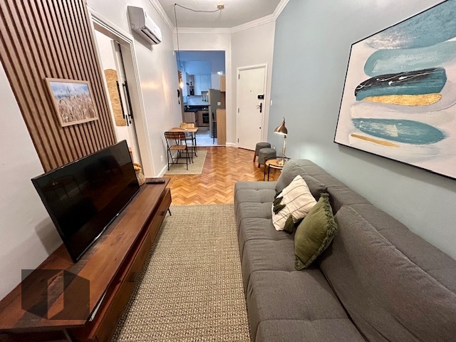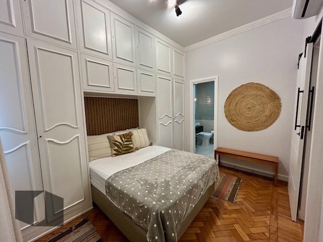 (Código: 61304, Rua Ronald de Carvalho) - Copacabana .Elegância na quadra da praia. Edifício com portaria 24h. Lindo apartamento totalmente reformado por arquiteto e finamente mobiliado, unindo sofisticação e praticidade. Ambientes bem distribuídos, composto por sala aconchegante, ar condicionado split ,uma suíte com armário, cozinha planejada com armários e equipada com eletrodoméstico sob medida, área de serviço com armários e banheiro de apoio.