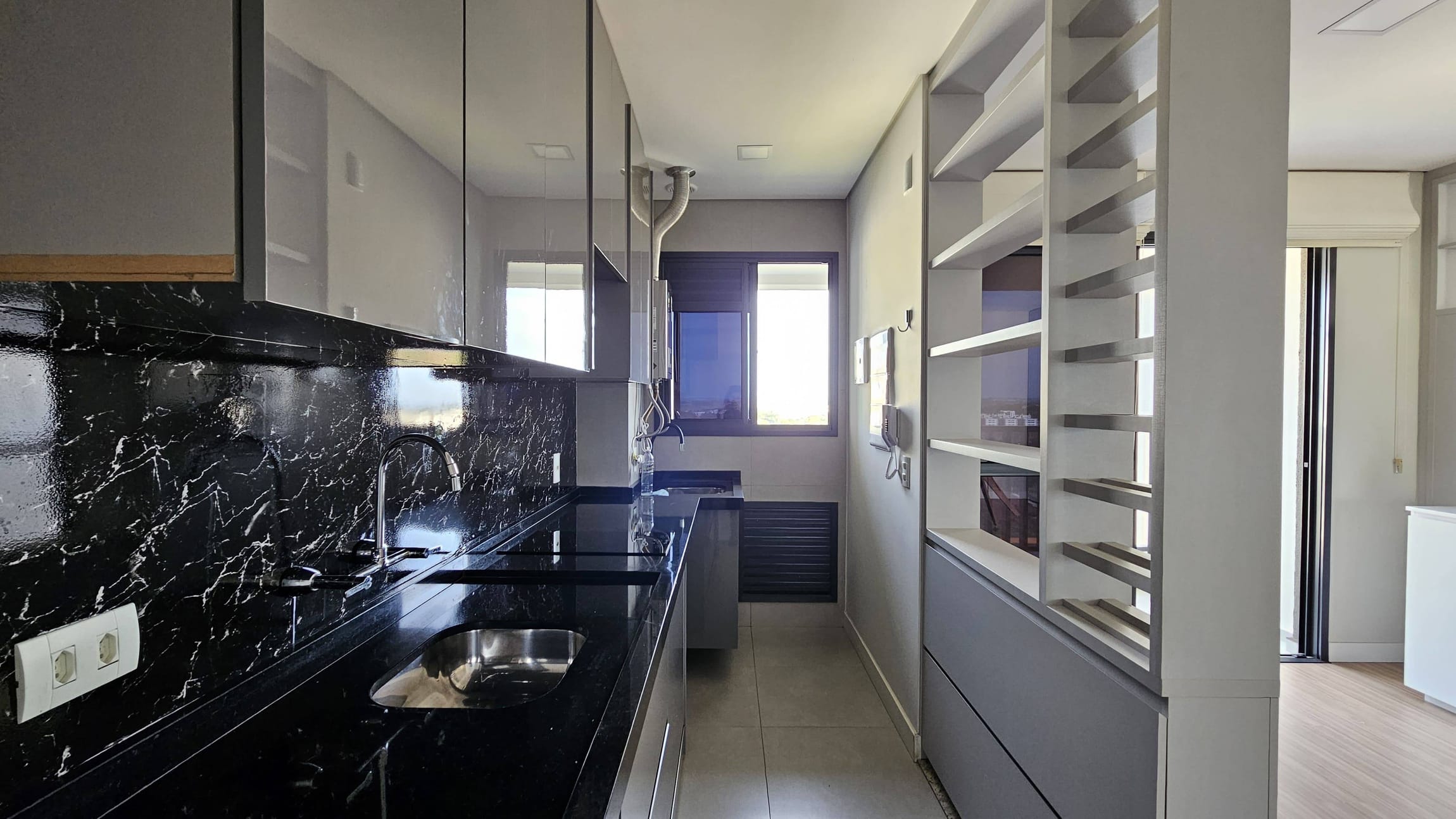 Cozinha: Completa com armários planejados, cooktop de indução e aquecedor a gás.