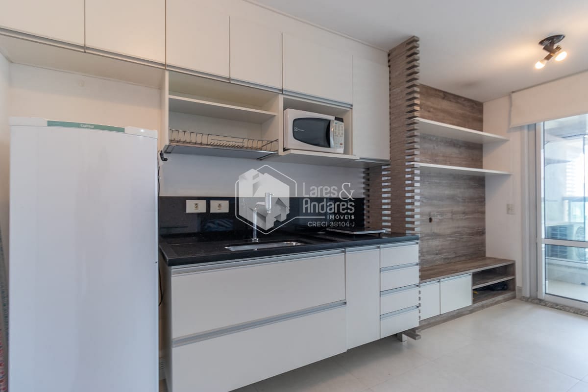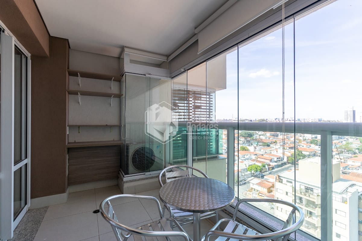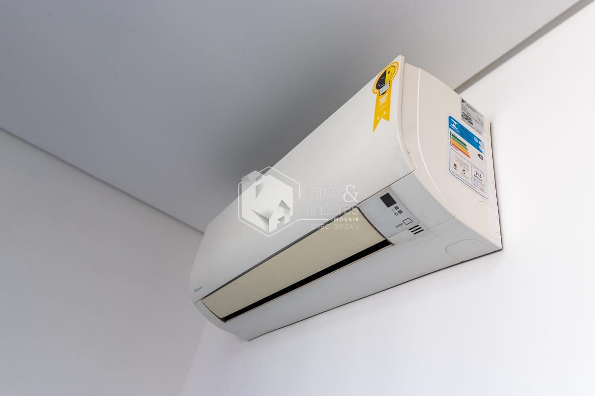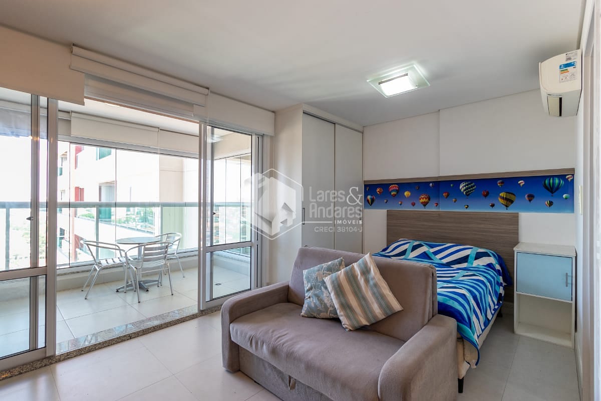 O apartamento é mobiliado e possui móveis planejados, piso em porcelanato e ar-condicionado, garantindo um toque moderno e conforto em todas as estações. A sacada permite que a luz natural entre, criando um ambiente ainda mais agradável.