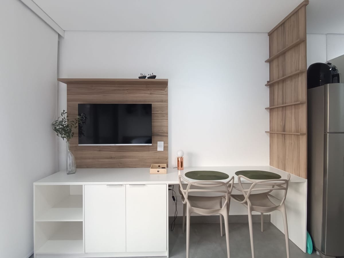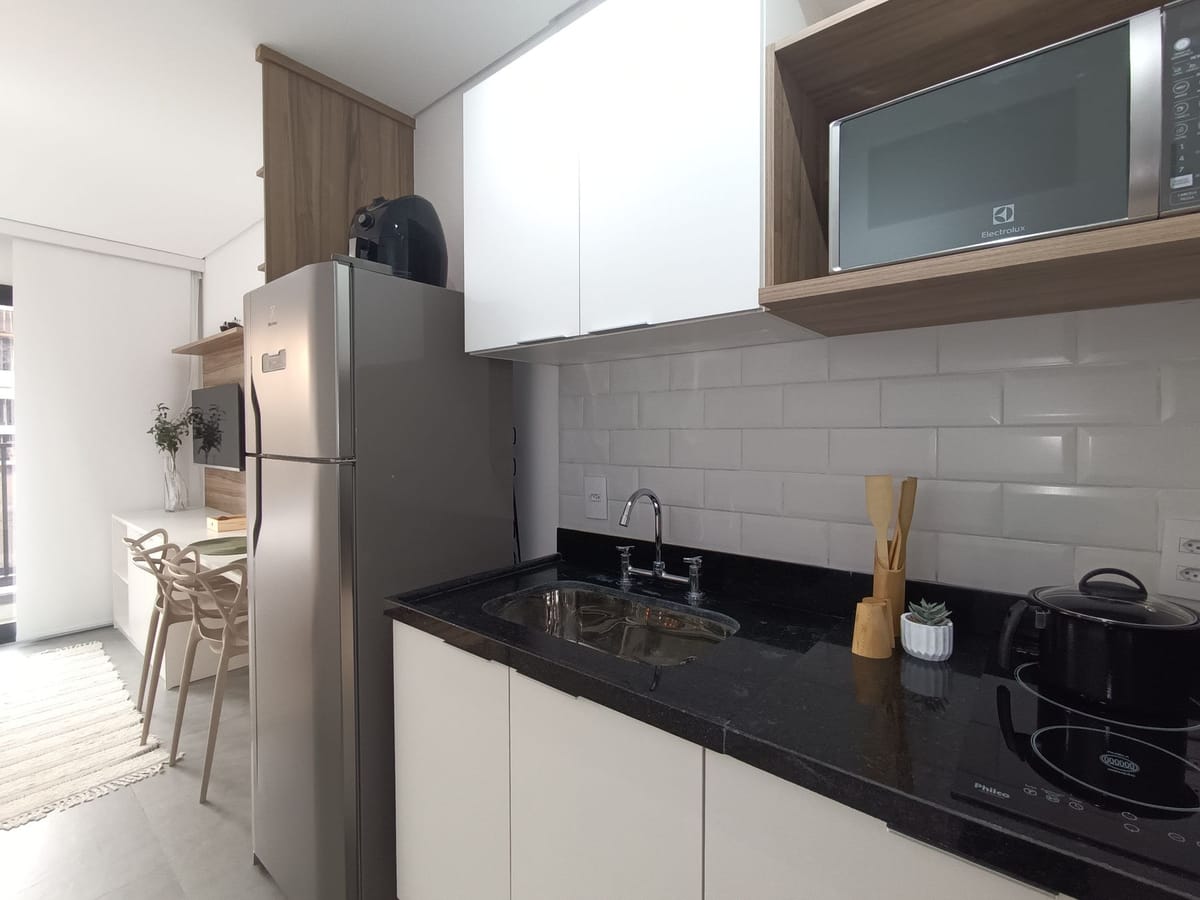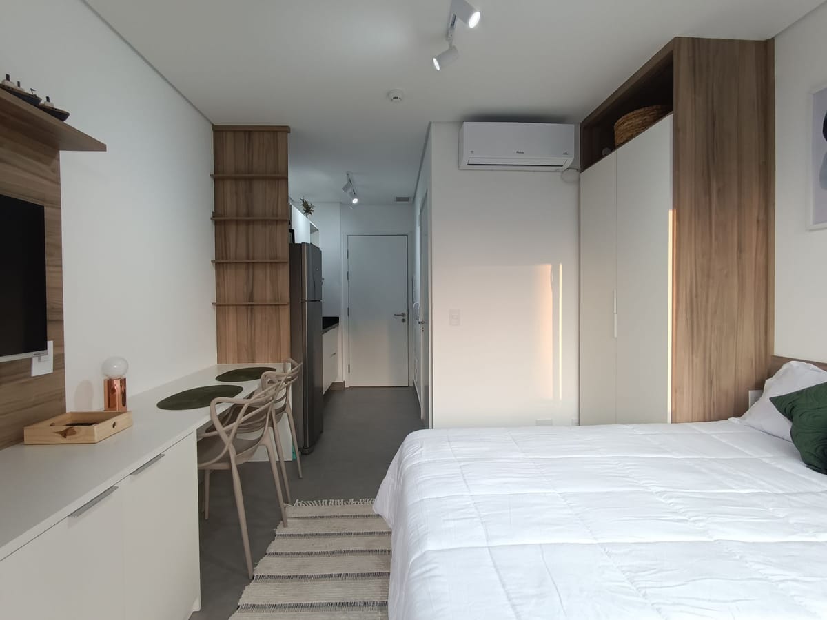 Apartamento mobiliado em localização estratégica no bairro Brooklin! Possui 23 m2 e 1 quarto[s]. Para facilitar o seu dia a dia, o imóvel já vem com tudo pronto para você morar.