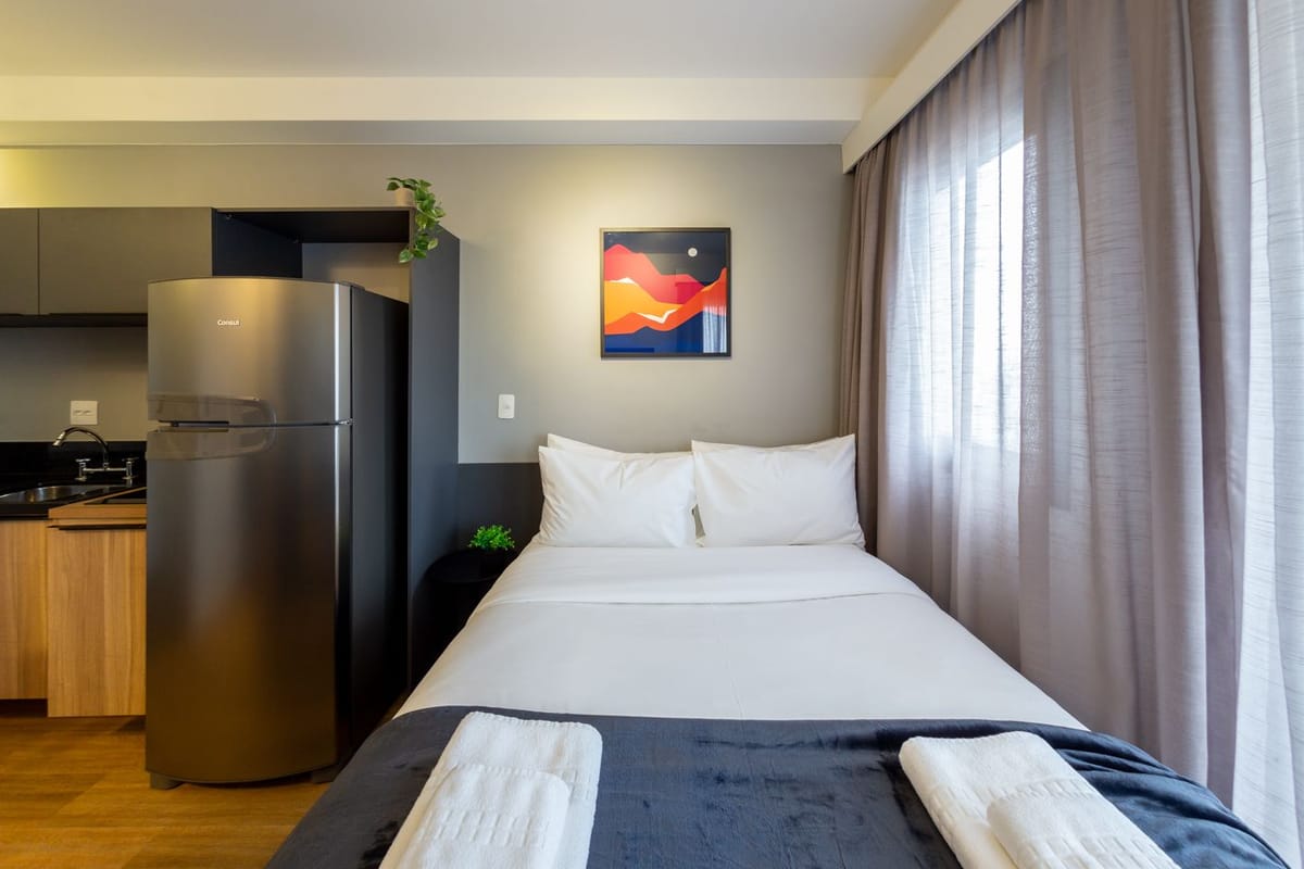 Apartamento mobiliado em localização estratégica no bairro Jardim das Acacias! Possui 27 m2 e 1 quarto[s]. Para facilitar o seu dia a dia, o imóvel já vem com tudo pronto para você morar.