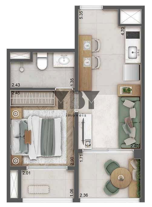Apartamento à Venda com 1 quartos, 43 m² por R$ 841.995