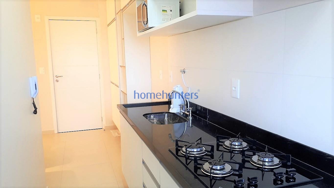 Apartamento 40m² Locação, andar alto, cozinha bem equipada /fogão cooktop, além de sacada e lavande