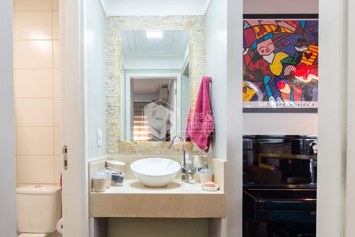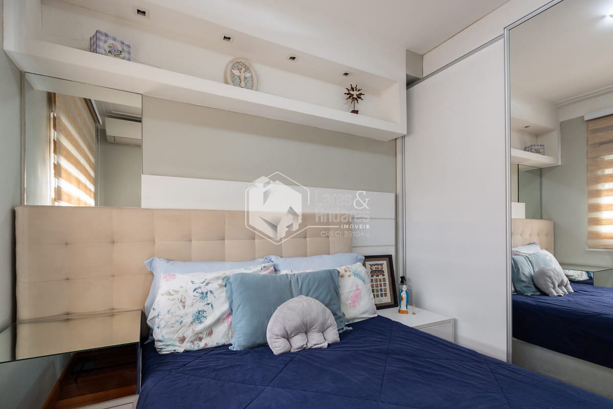 Sala com sofá, tapete, mesa redonda de vidro com 4 cadeiras e TV LED. Suíte com cama box + colchão de molas ensacadas, armários planejados e TV LED Ar-condicionado na sala e na suíte. Banheiro moderno com revestimento de qualidade.