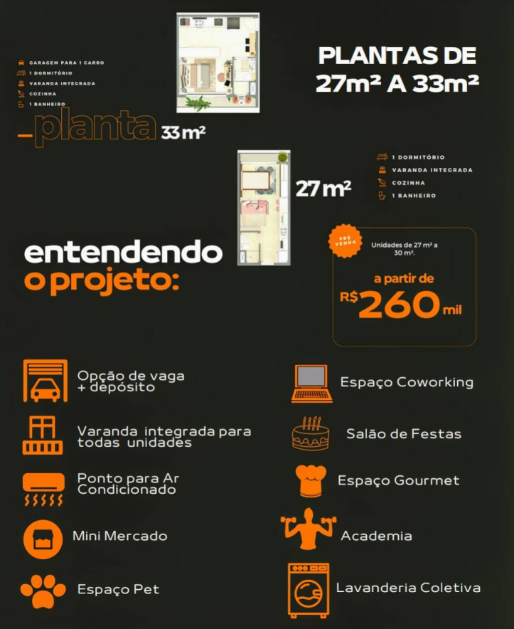 Apartamento à Venda com 1 quartos, 33 m² por R$ 280.000