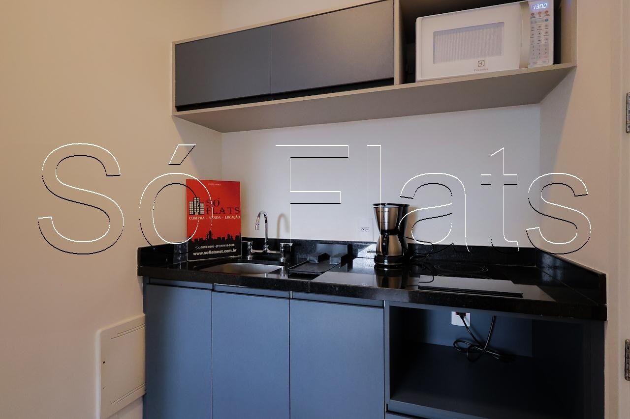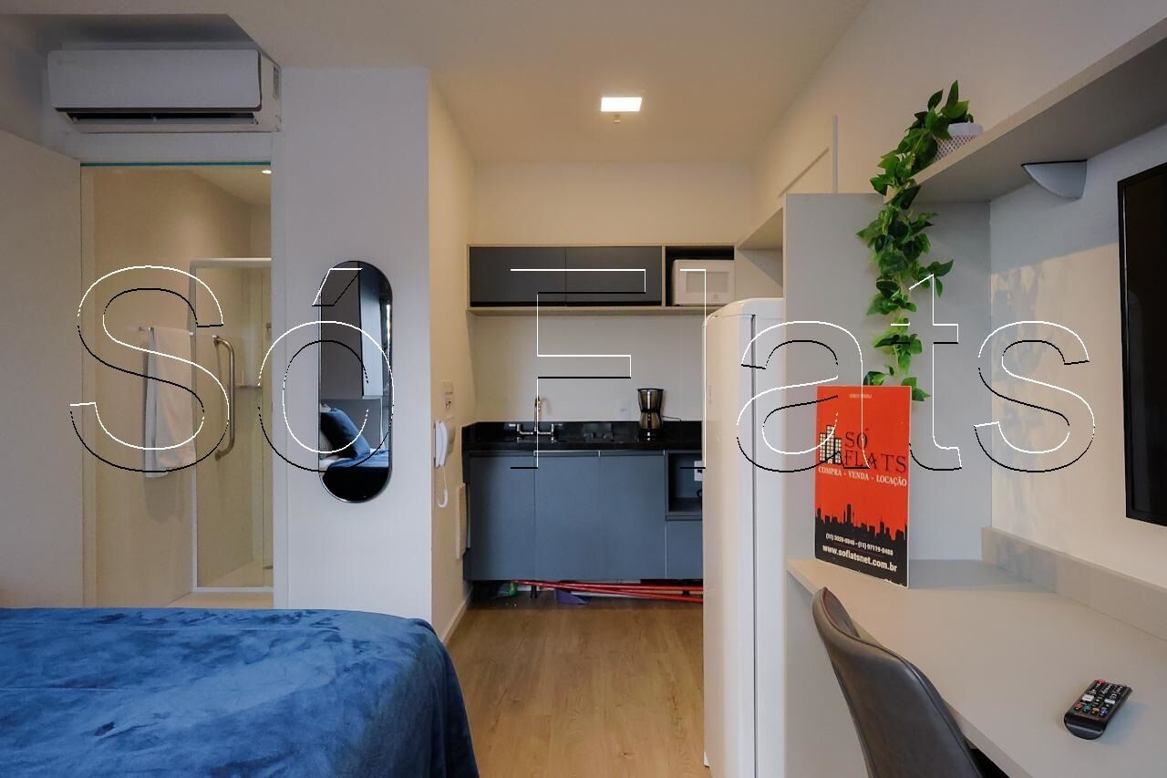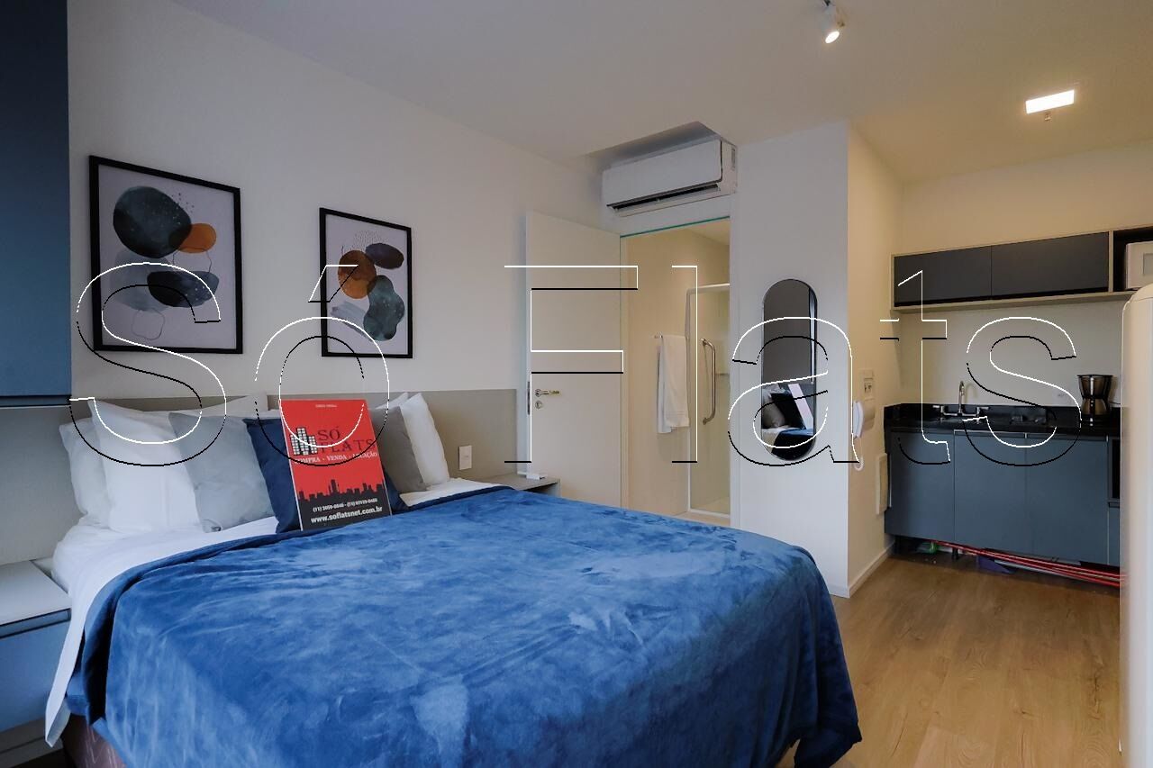 O apartamento no modelo Studio com 22m², muito bem equipado, conta com cozinha americana completa e 01 dormitório.