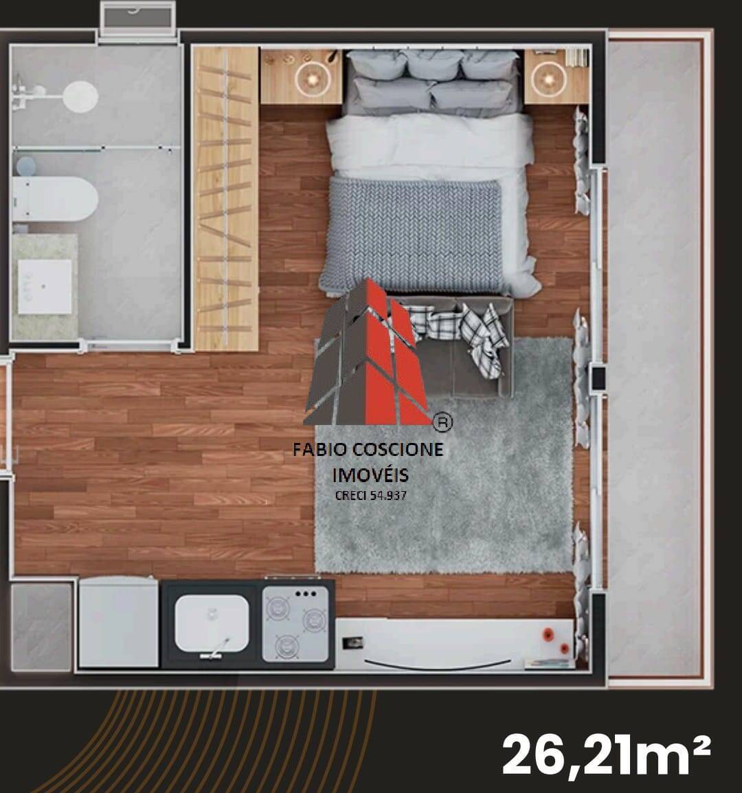 Studios de 24,23 m² ate 46,84m² - com 01 vaga de garagem ou sem vaga- vagas para motos.