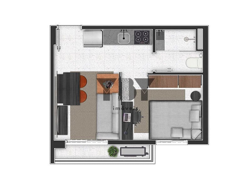 Apartamento à Venda com 1 quartos, 27 m² por R$ 435.055