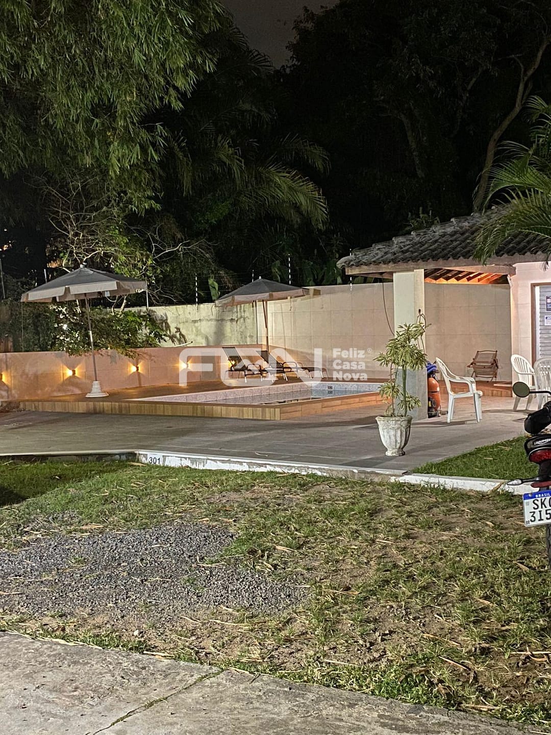 Área de convivência com piscina e churrasqueira ideal para momentos de lazer