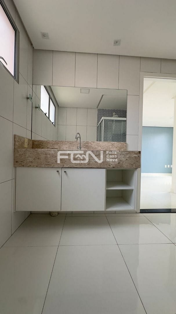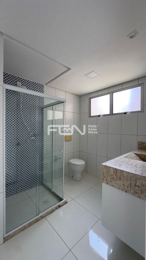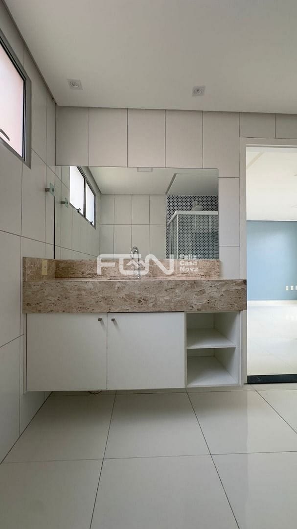 Banheiro com box em vidro e armário planejado