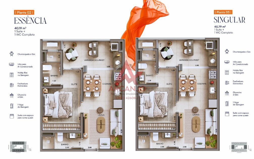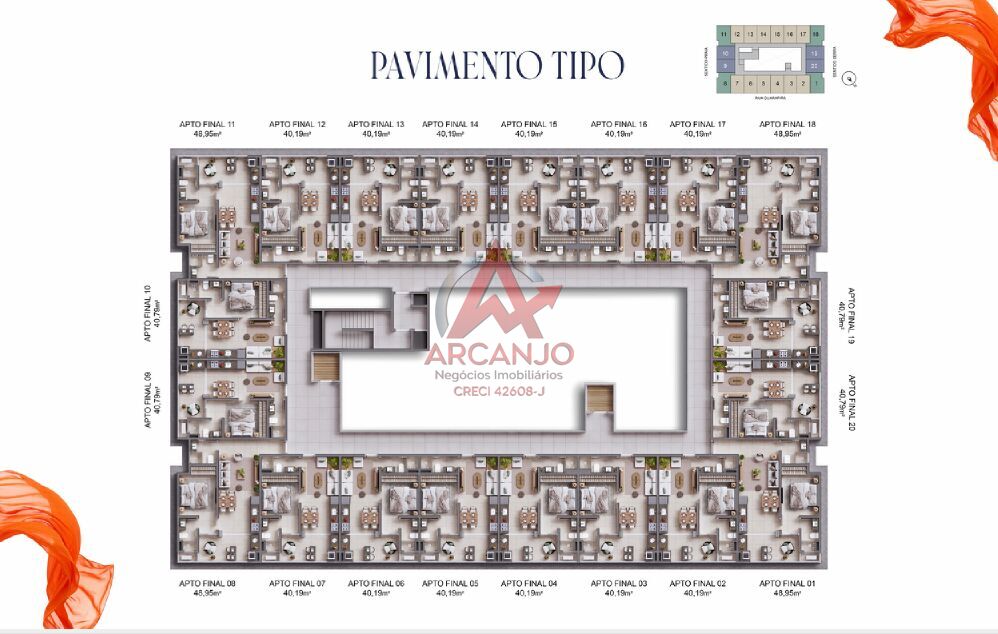Plantas Tipo com 49m2 /40,19m2 e 40,79m2
