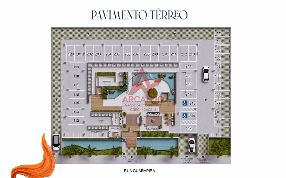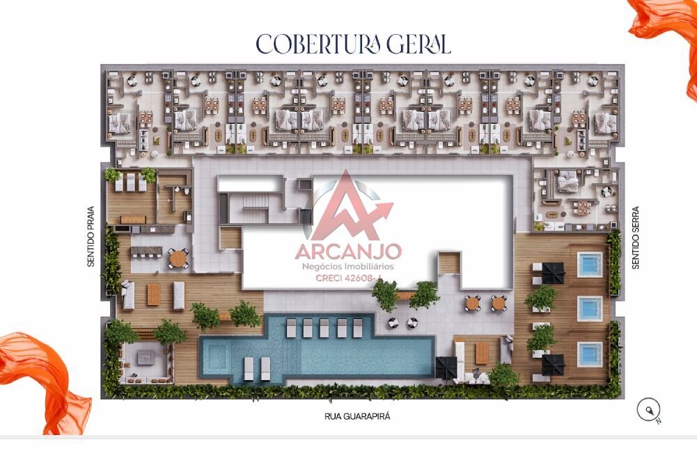 - Infraestrutura completa: elevador panorâmico no hall de entrada, academia, sauna e piscina infantil