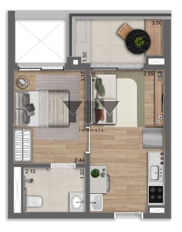 Apartamento à Venda com 1 quartos, 41 m² por R$ 467.860