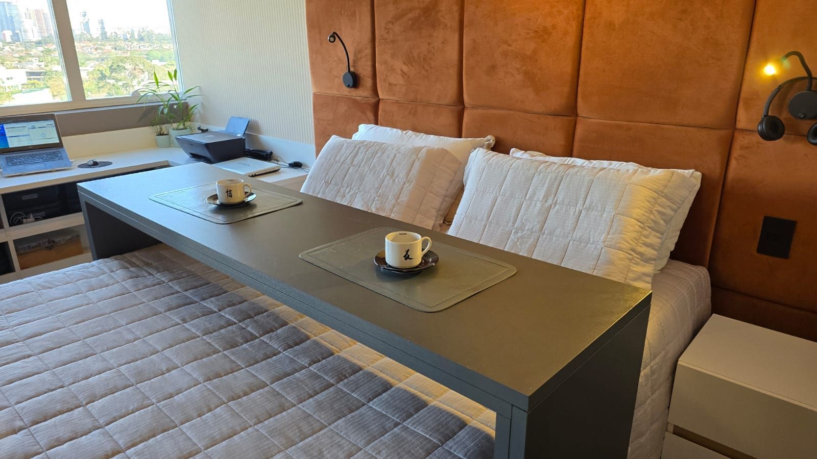 Cabeceira com luminárias embutidas