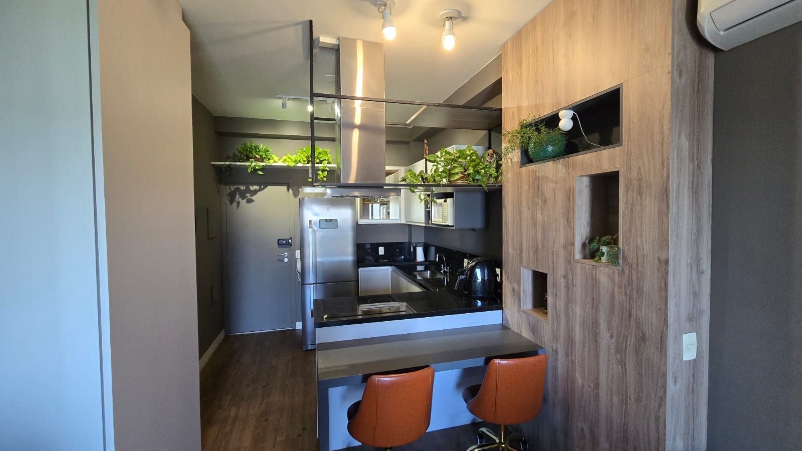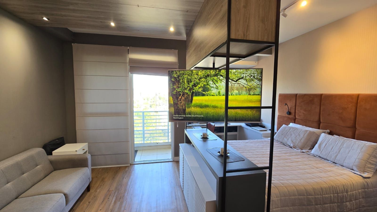 Perfeito para quem busca praticidade, conforto e um ambiente moderno, este studio de 45 m² foi planejado para aproveitar cada espaço com funcionalidade e bom gosto.