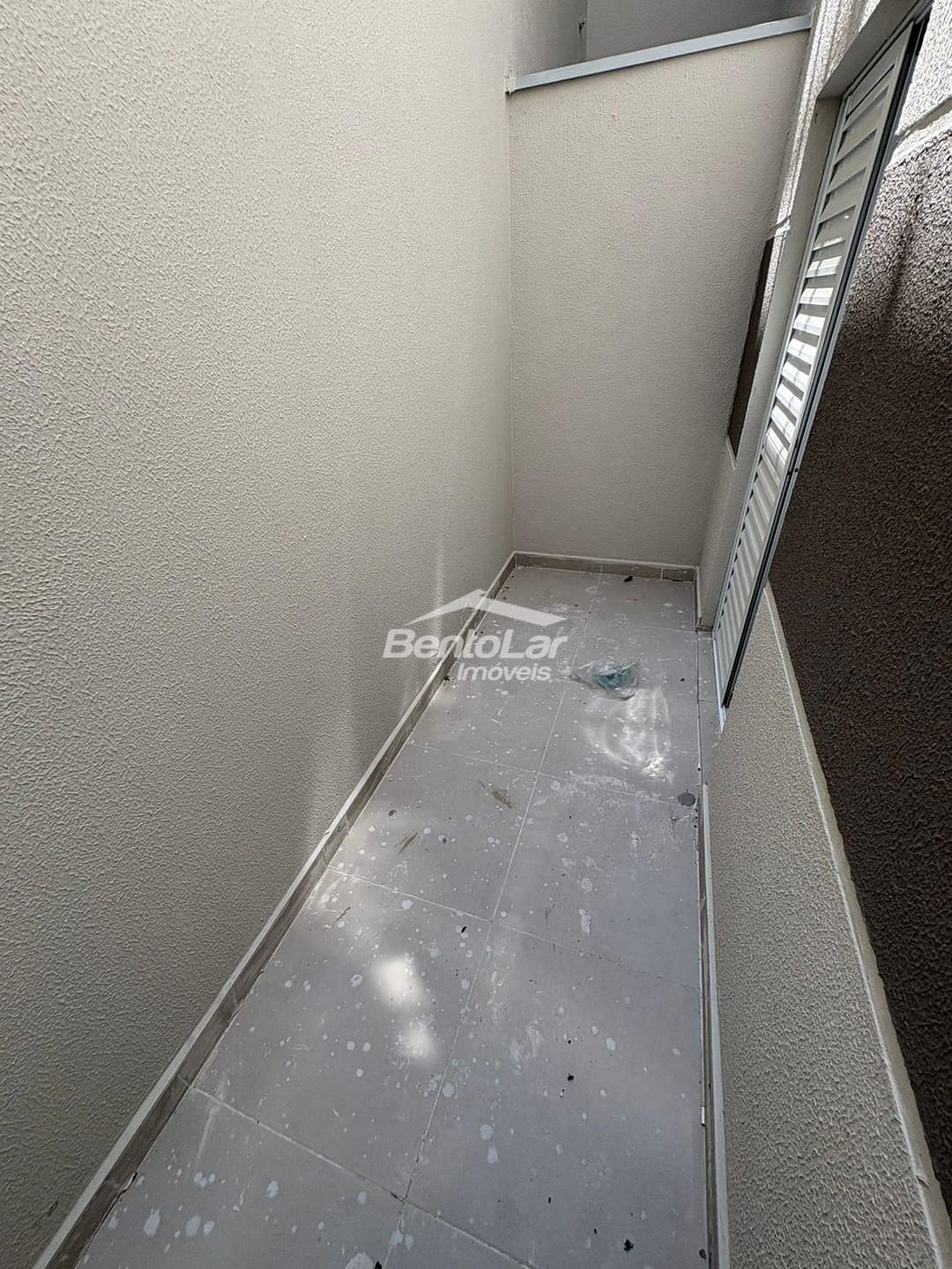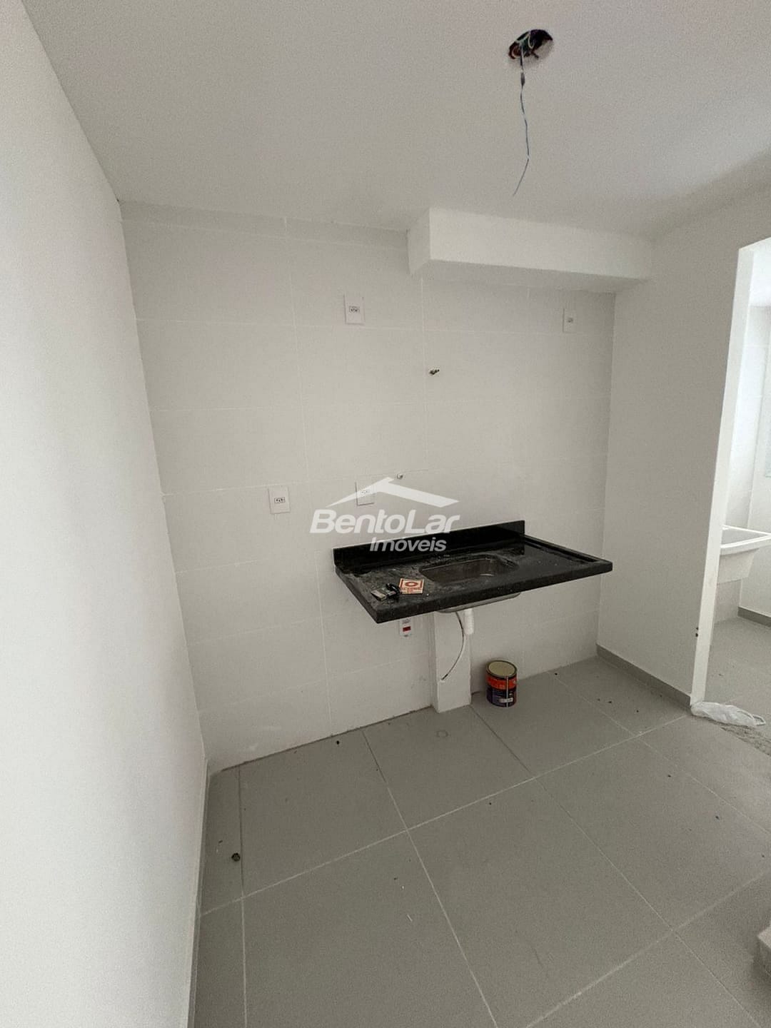 Apto com 1 dormitório com varanda, sala, banheiro e área de serviço.