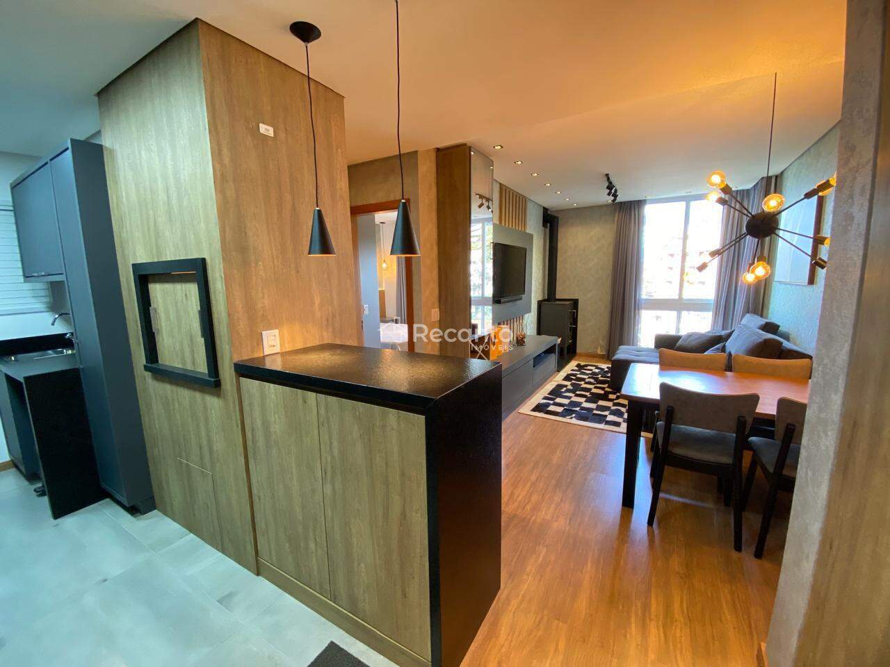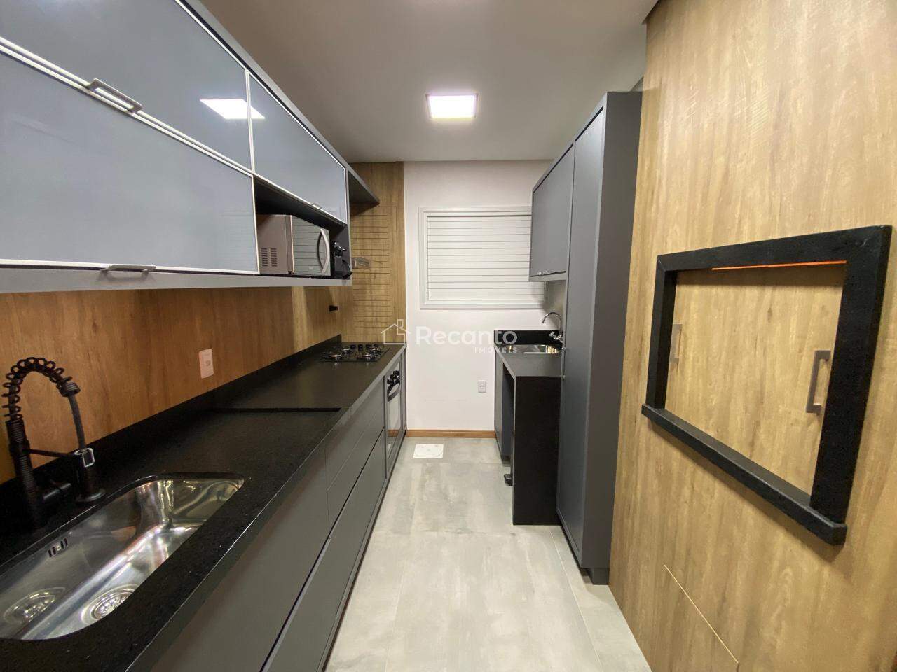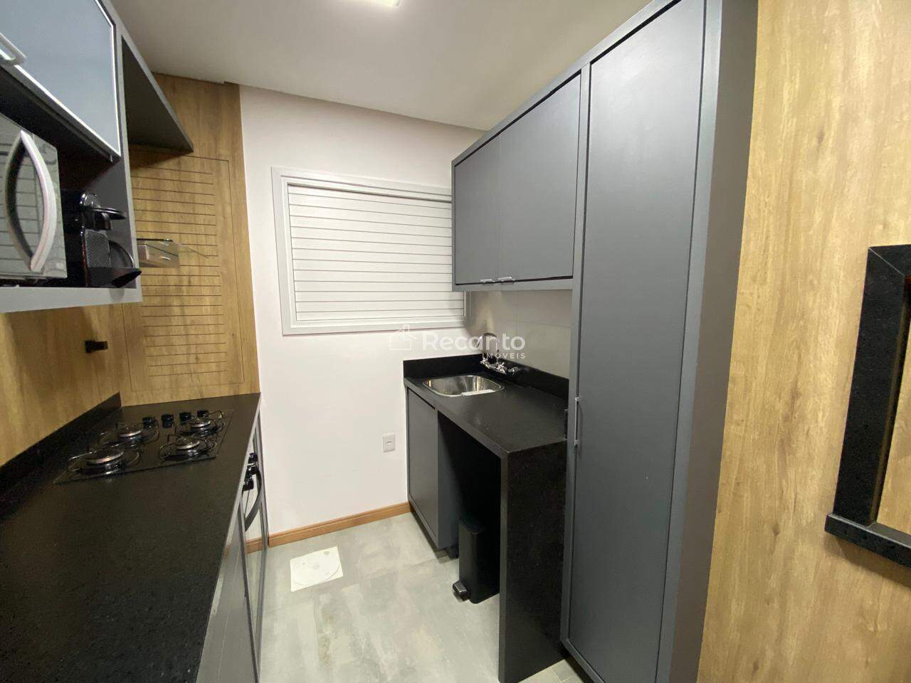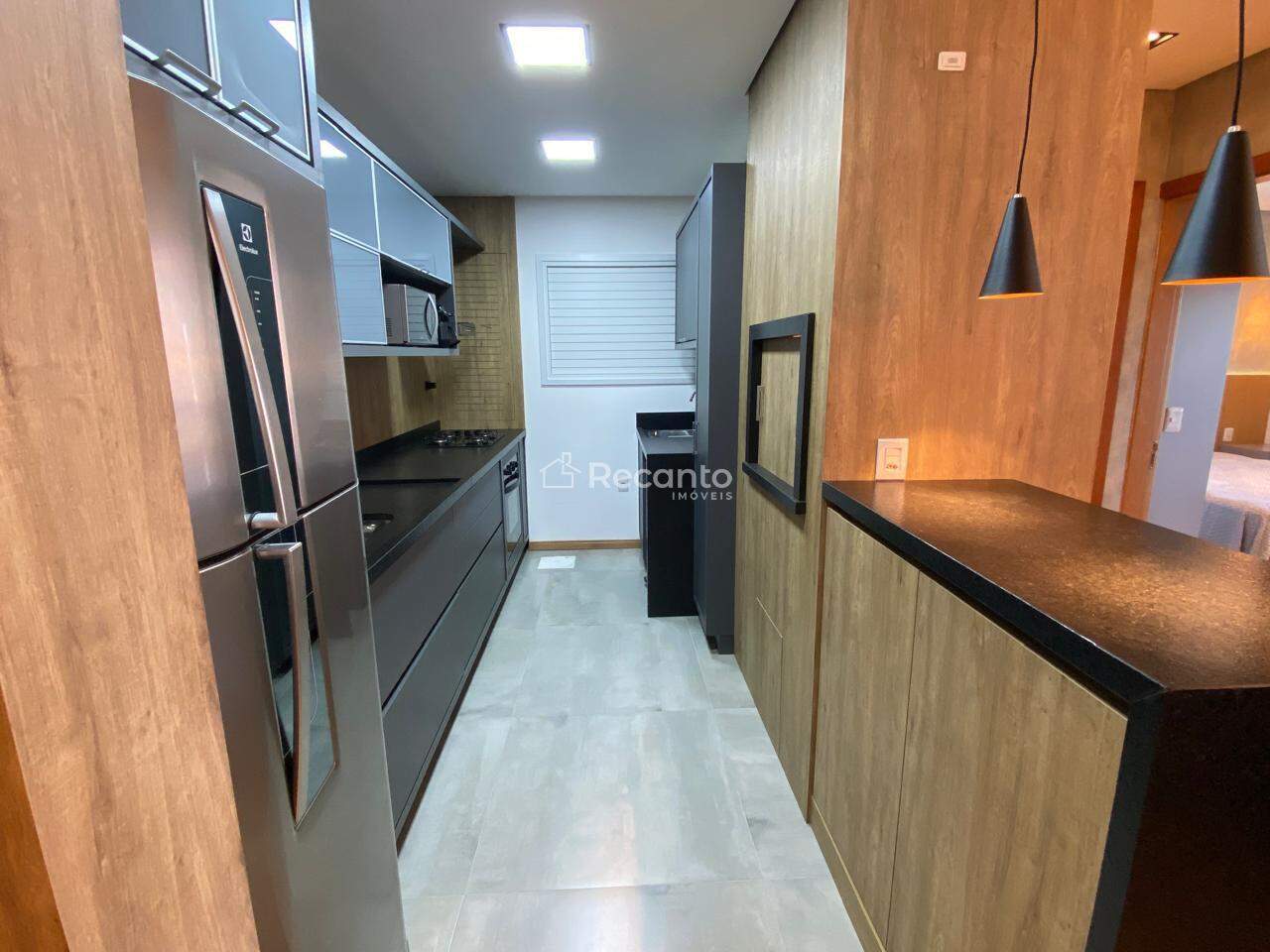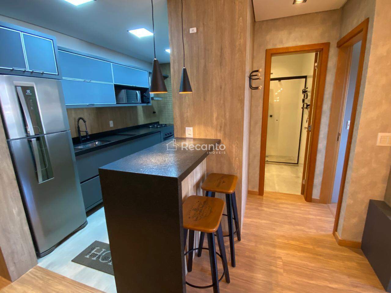 Este apartamento dispõe de 1 dormitório espaçoso, 1 banheiro completo e uma área de serviço funcional. A sala de estar, equipada com uma charmosa lareira, é o local perfeito para relaxar nos dias mais frios. A cozinha é moderna e está totalmente equipada, garantindo praticidade no seu dia a dia.