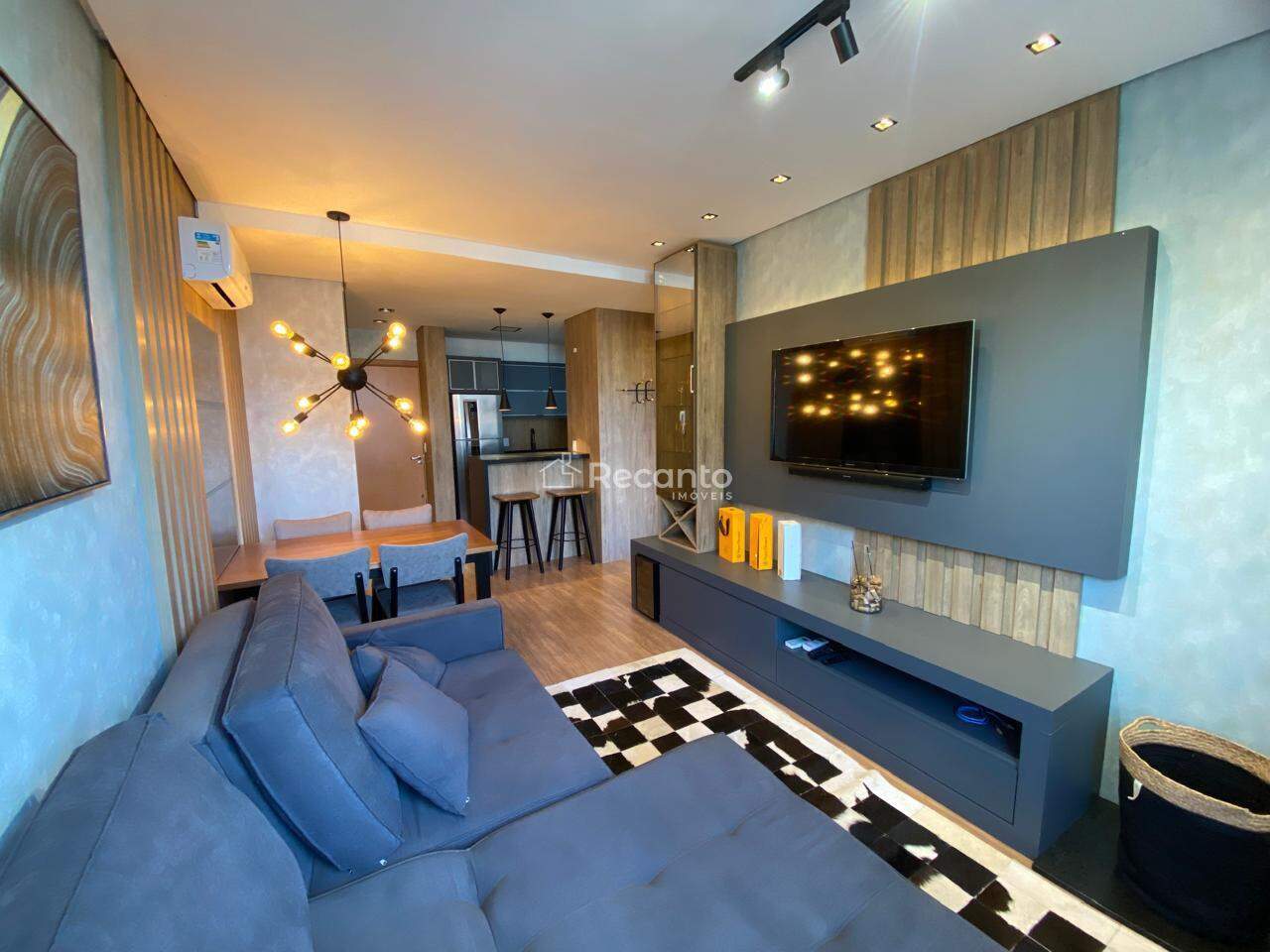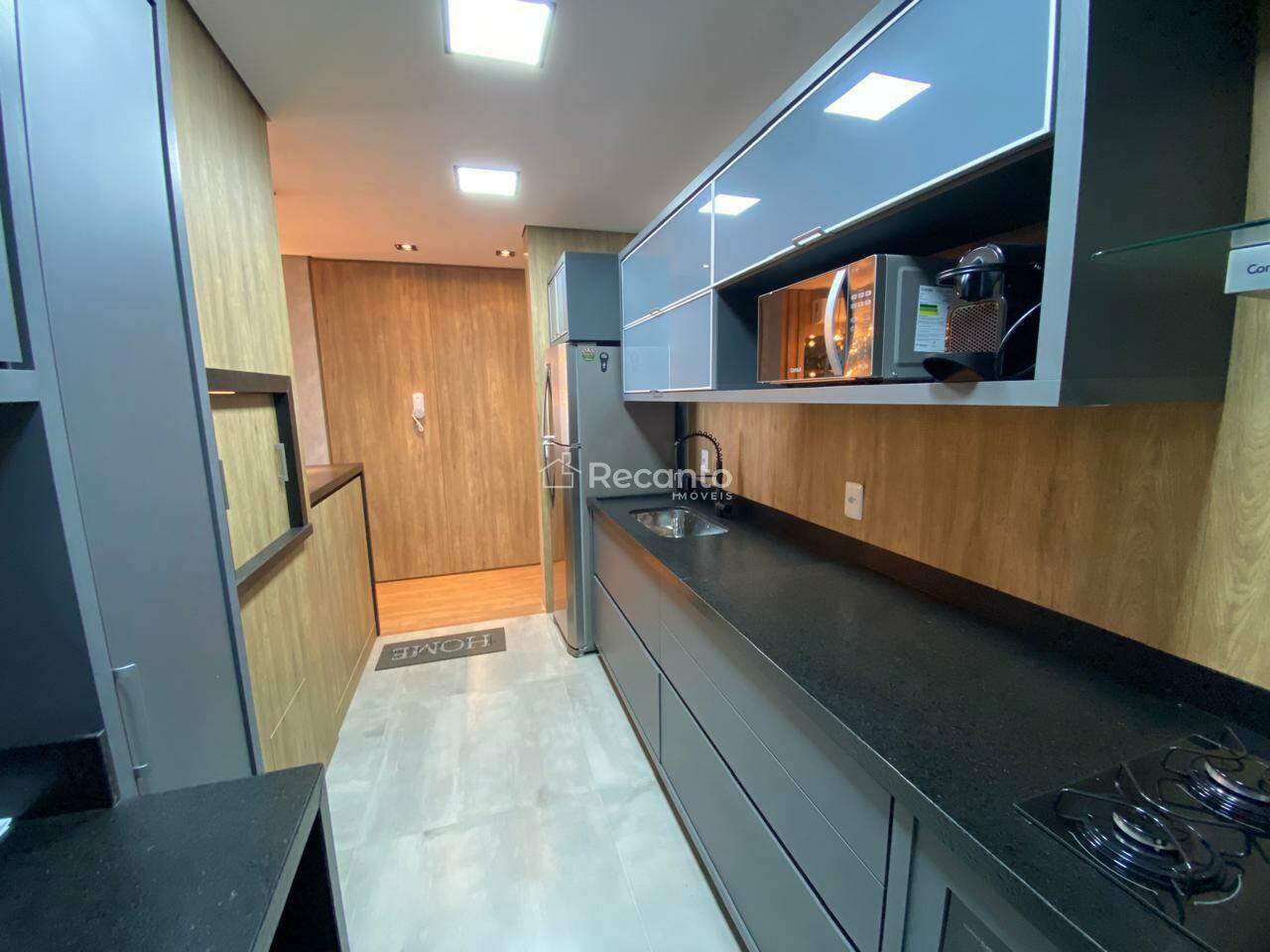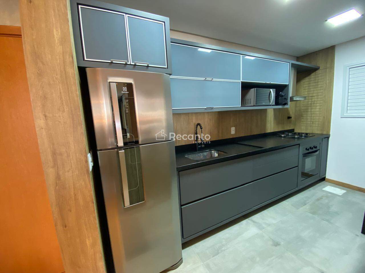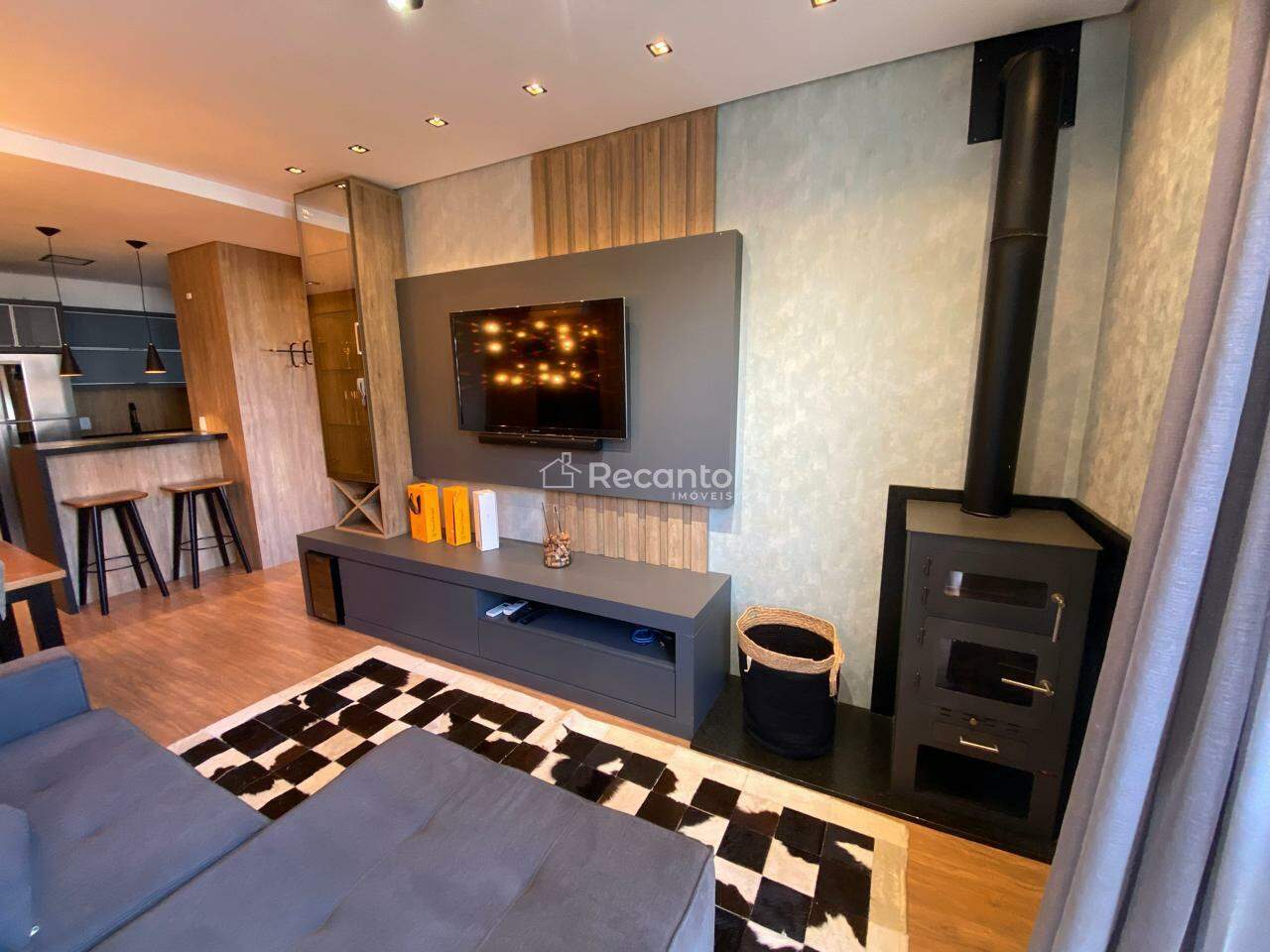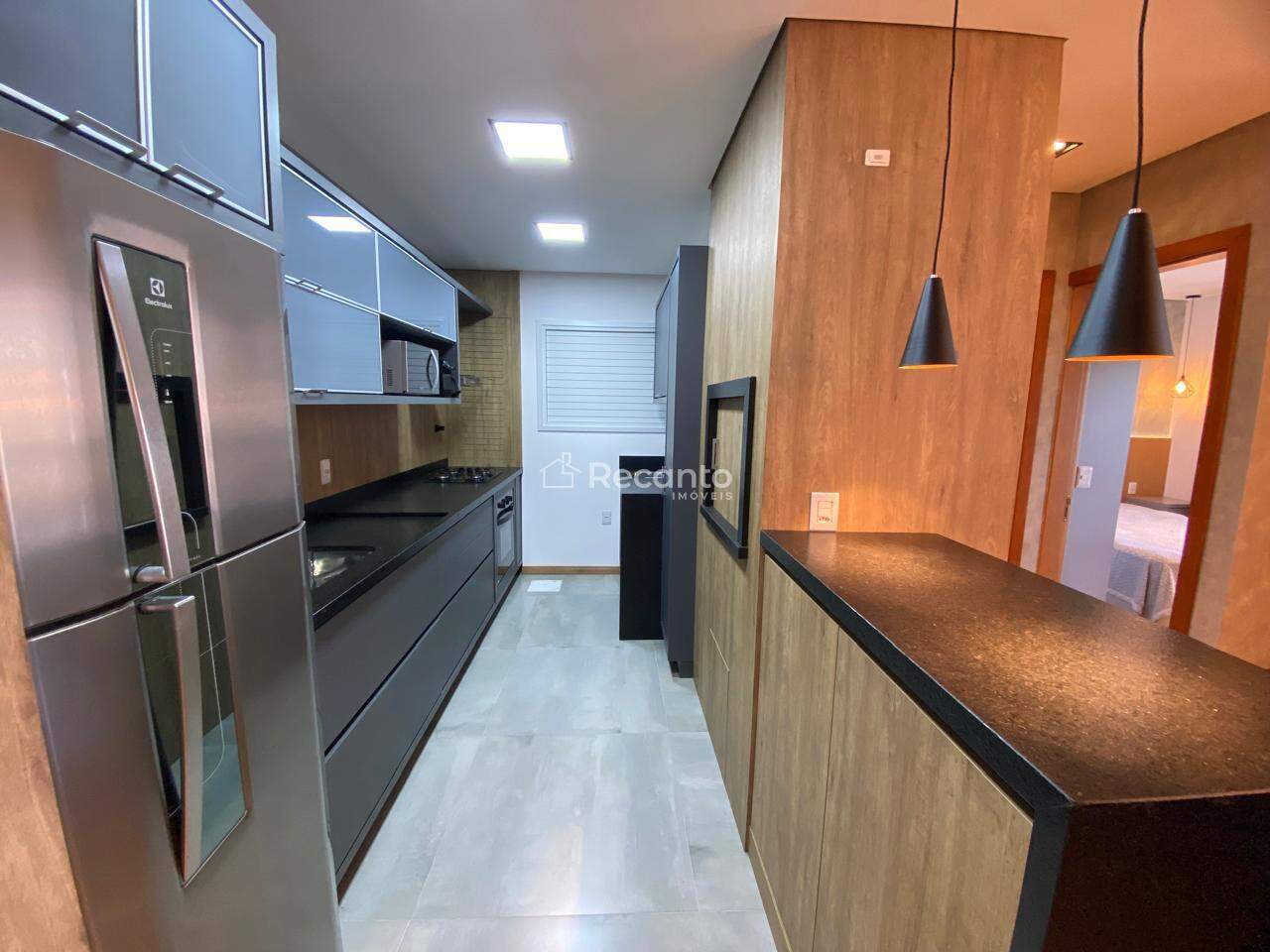 Este apartamento dispõe de 1 dormitório espaçoso, 1 banheiro completo e uma área de serviço funcional. A sala de estar, equipada com uma charmosa lareira, é o local perfeito para relaxar nos dias mais frios. A cozinha é moderna e está totalmente equipada, garantindo praticidade no seu dia a dia.