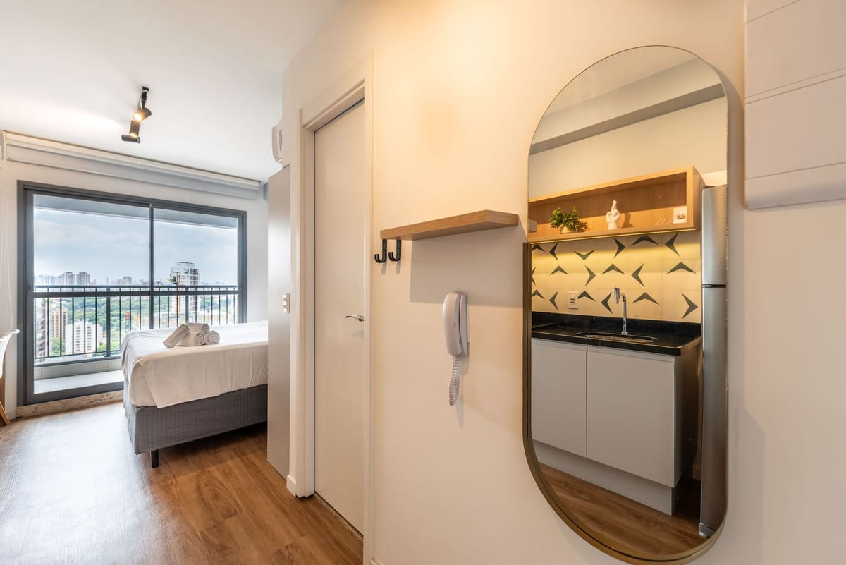 Apartamento mobiliado em localização estratégica no bairro Vila Mariana! Possui 25 m2 e 1 quarto[s]. Para facilitar o seu dia a dia, o imóvel já vem com tudo pronto para você morar.