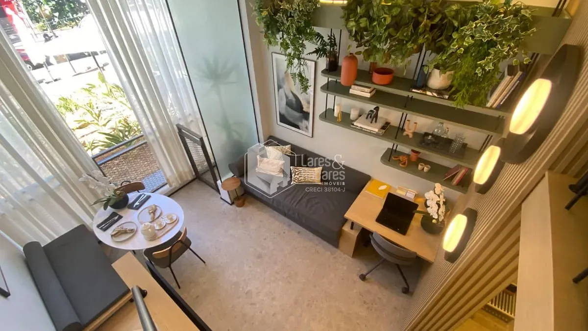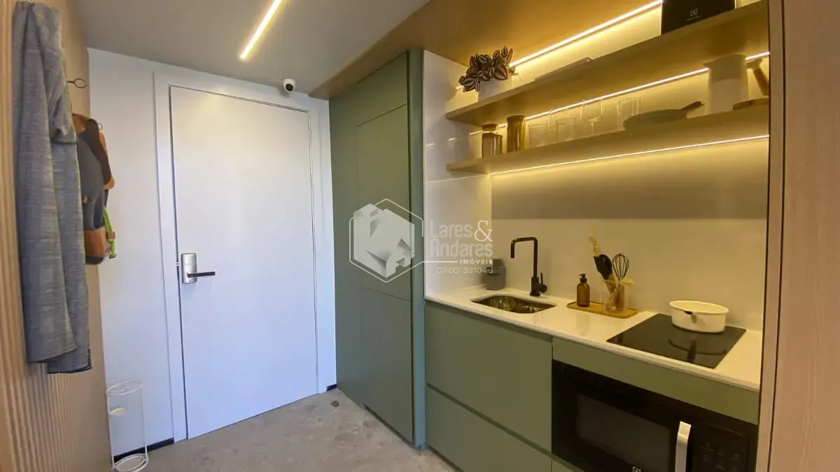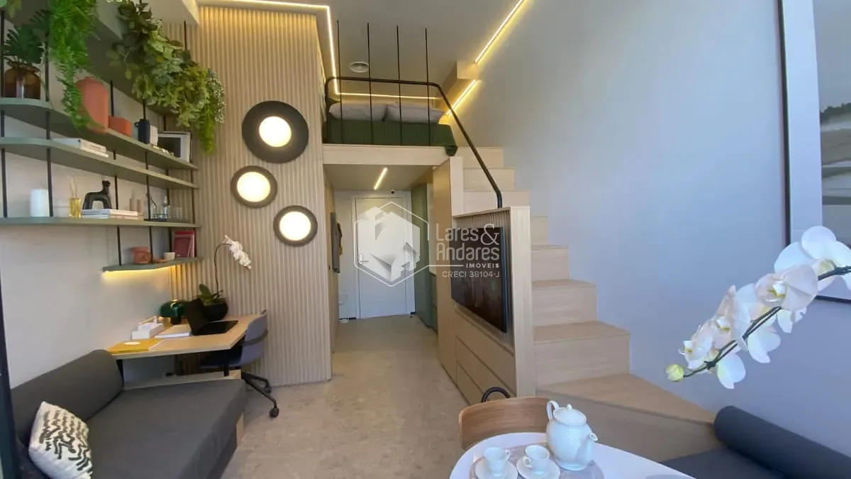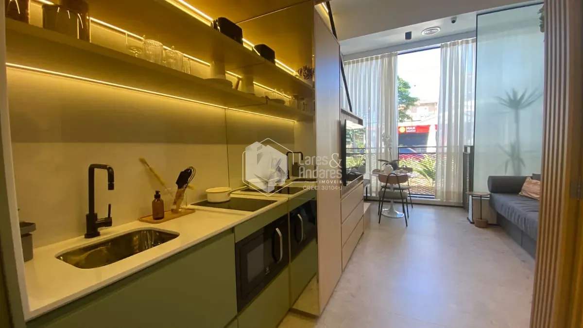 Localizado no 10º andar, este studio conta com uma planta funcional que integra cozinha e sala, oferecendo mais praticidade no dia a dia.