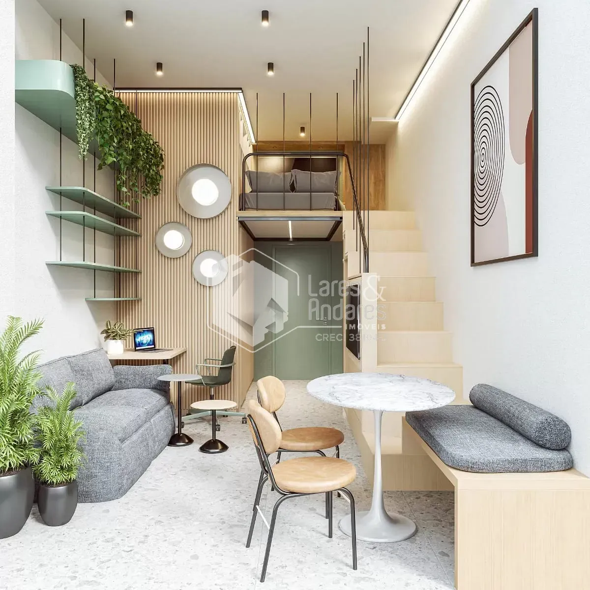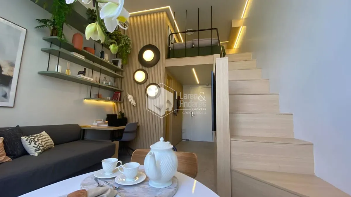 Unidade será entregue pronta, com piso, móveis planejados e mezanino.