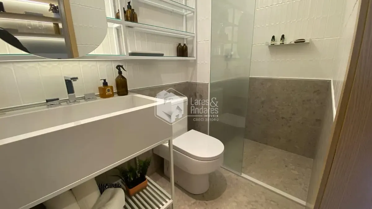 Banheiro moderno e bem planejado.