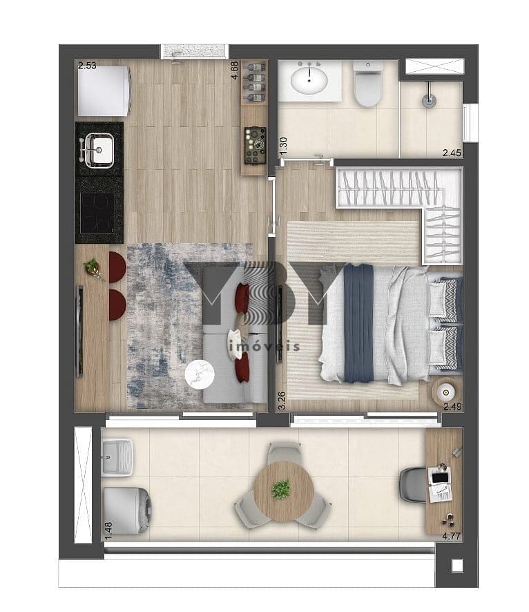 Apartamento à Venda com 1 quartos, 36 m² por R$ 567.350