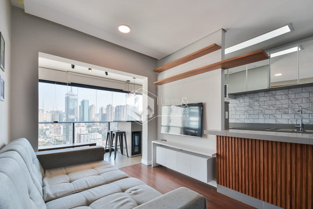 Com 49m² muito bem distribuídos, o imóvel é totalmente mobiliado, possui projeto original de interiores, armários planejados em todos os ambientes e já vem equipado com eletrodomésticos de primeira linha cozinha Brastemp e lava e seca LG.