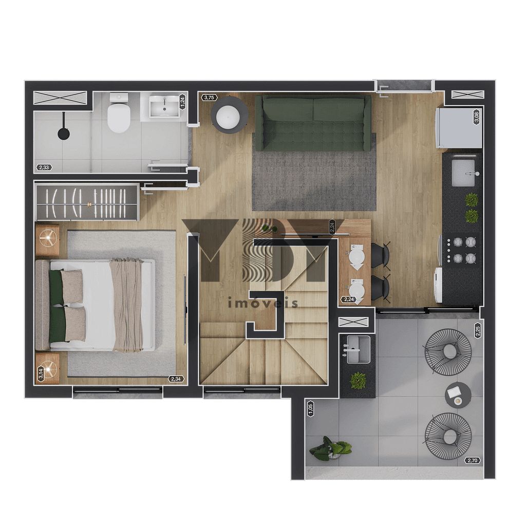 Apartamento à Venda com 1 quartos, 31 m² por R$ 268.666