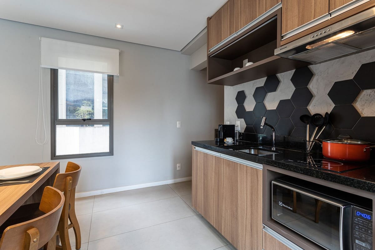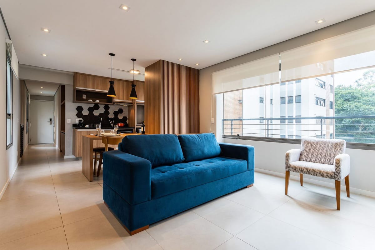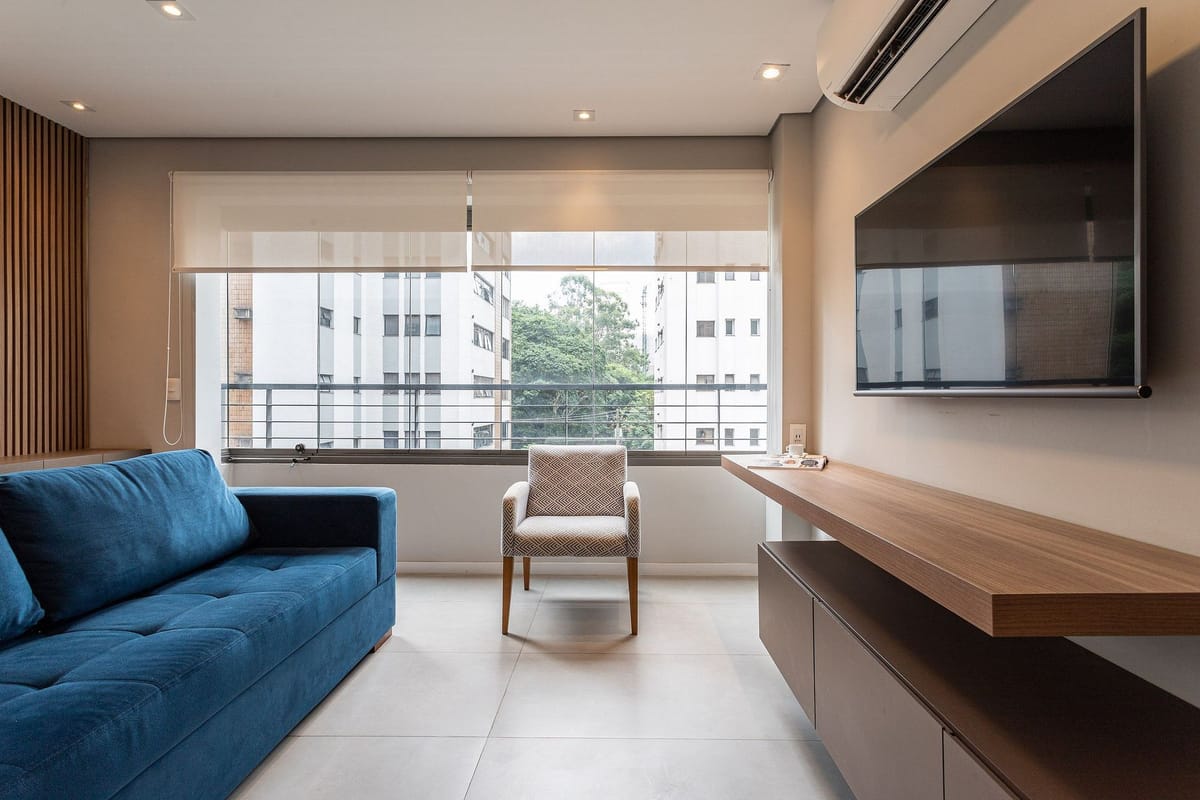 Apartamento mobiliado em localização estratégica no bairro Vila Nova Conceição! Possui 42 m2 e 1 quarto[s]. Para facilitar o seu dia a dia, o imóvel já vem com tudo pronto para você morar.