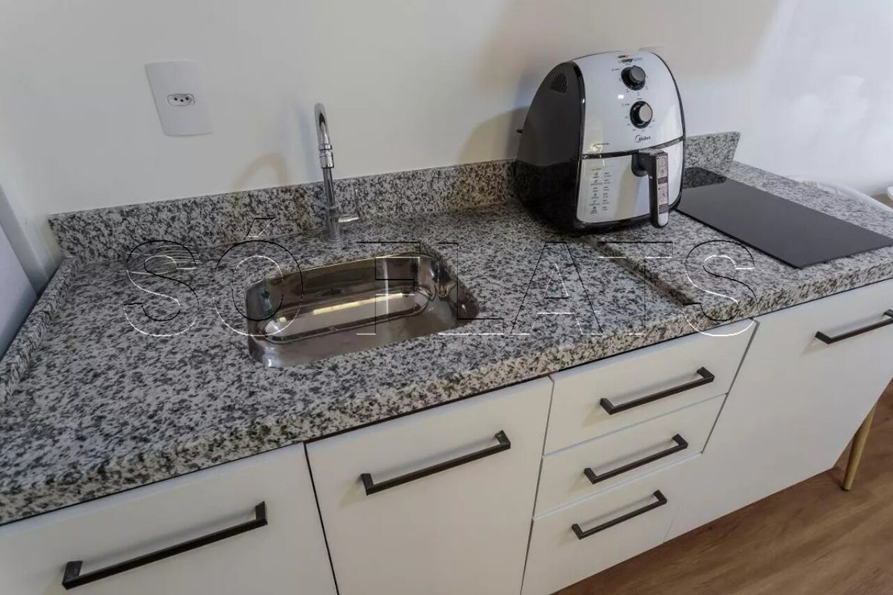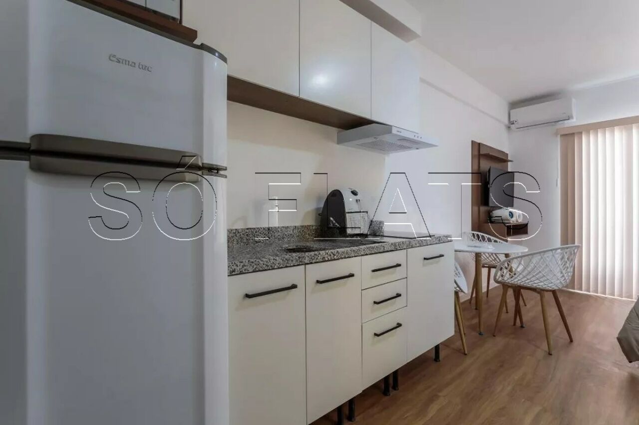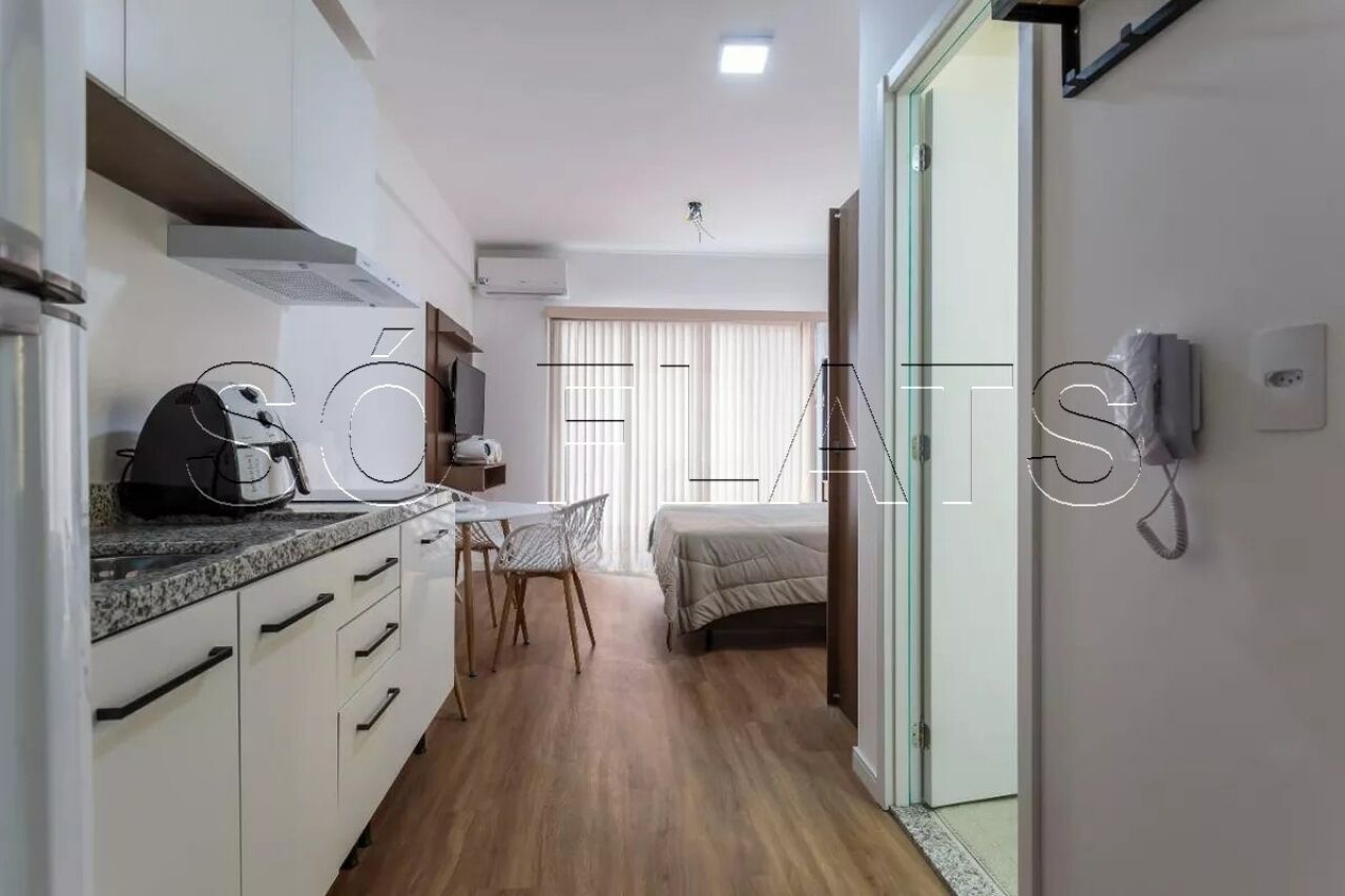 Studio 24m² distribuídos em 01 dormitório e cozinha americana.