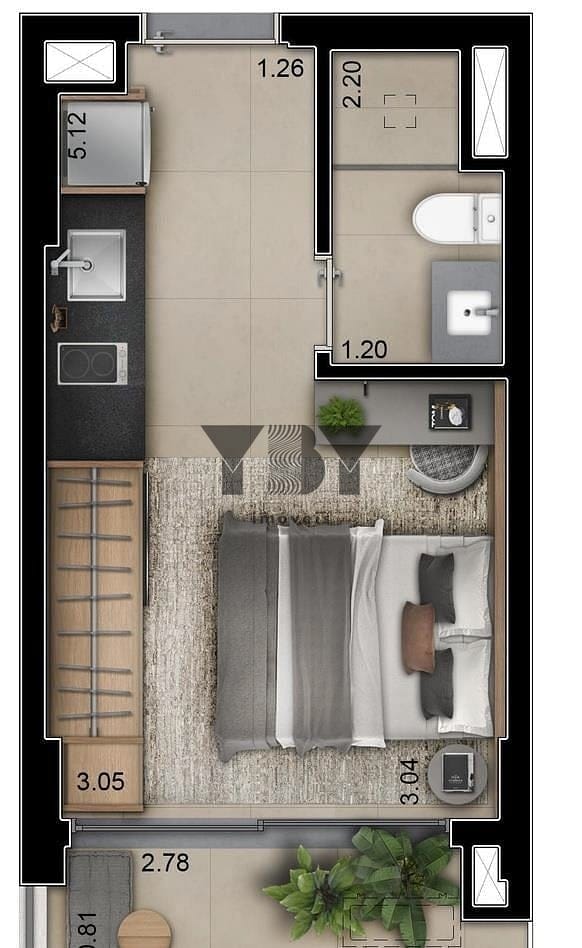 Apartamento à Venda com 1 quartos, 25 m² por R$ 1.040.850