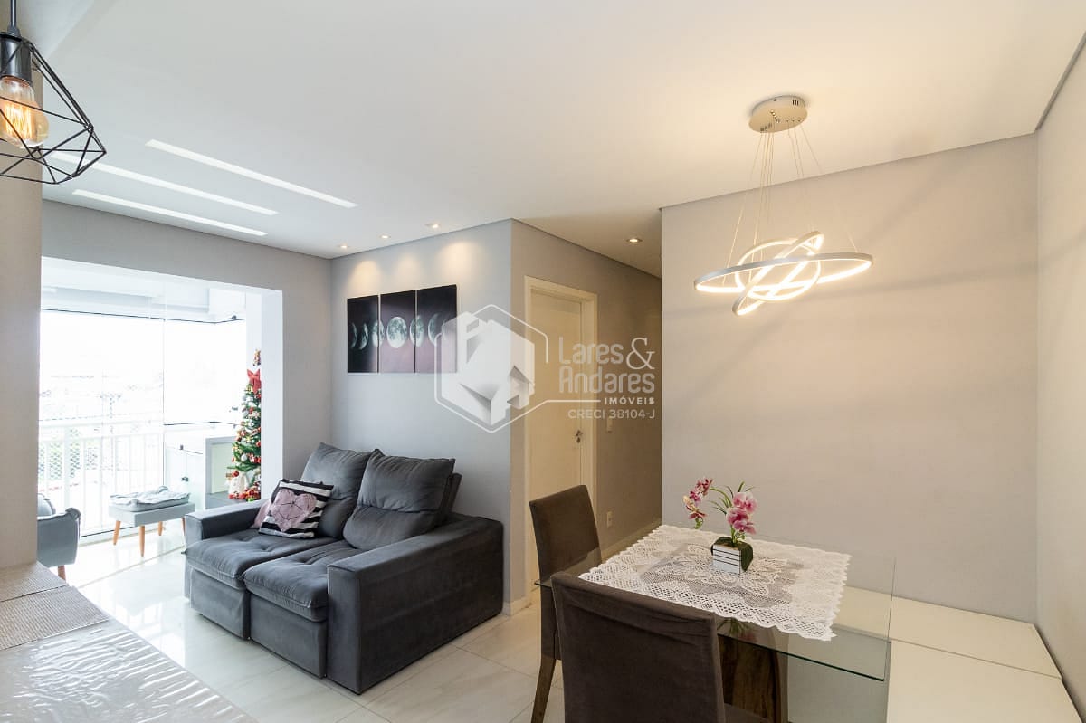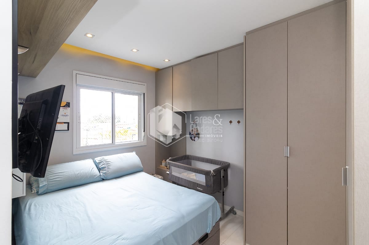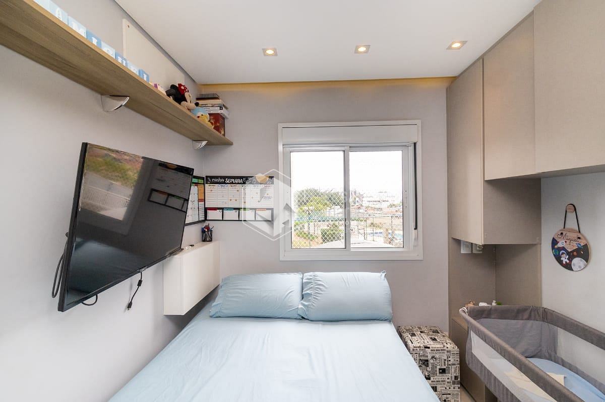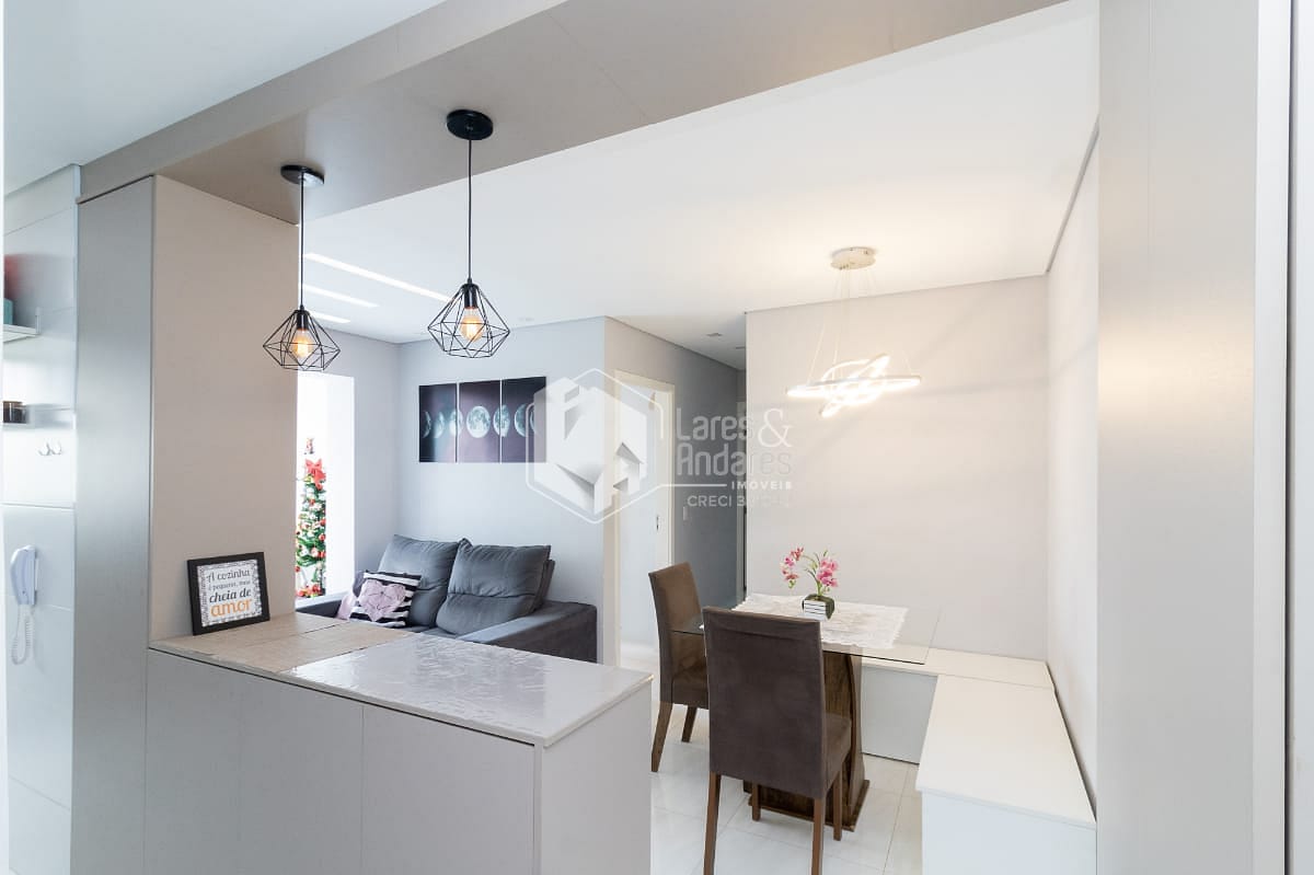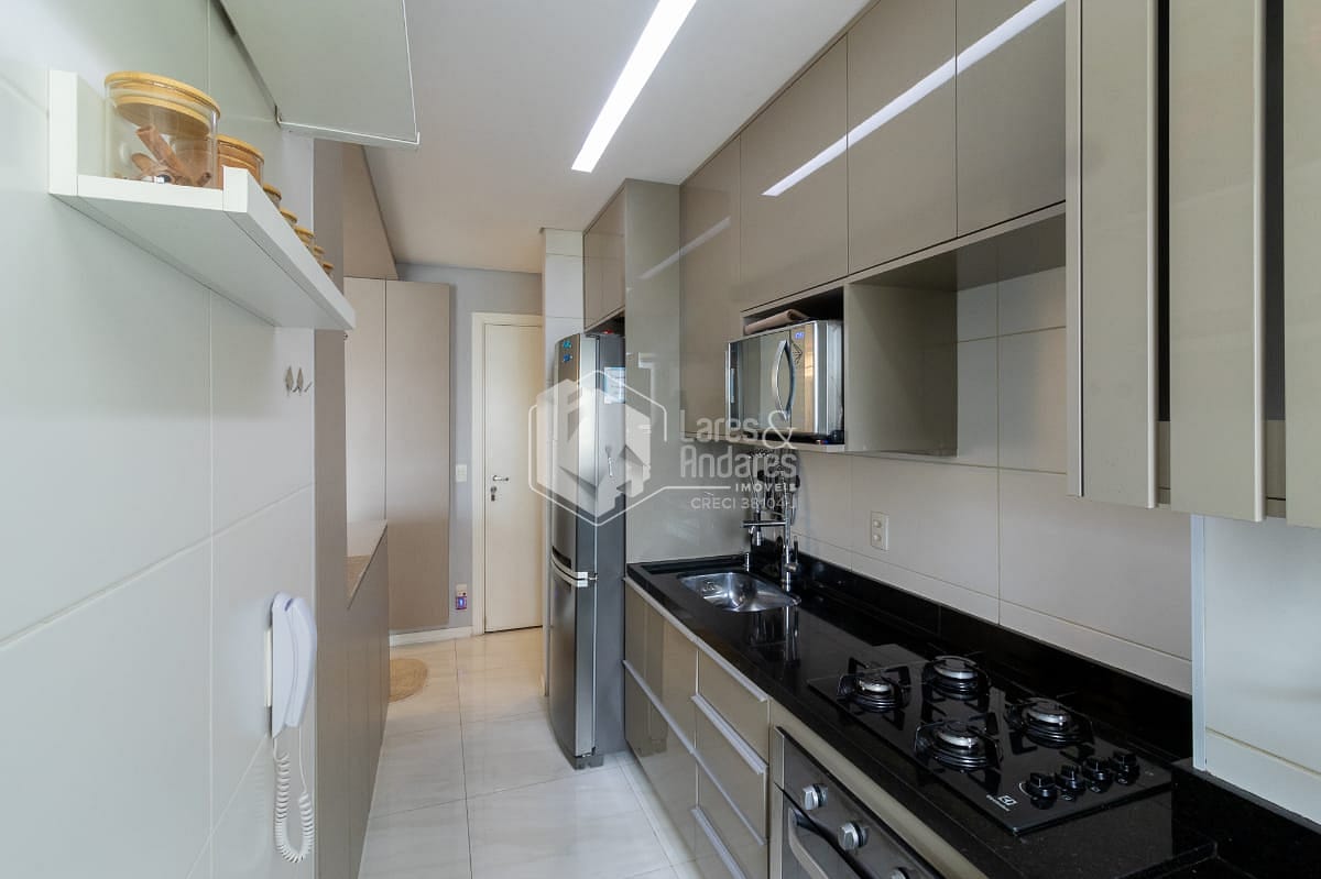 O apartamento possui 2 quartos, sendo 1 suíte, e 1 banheiros bem distribuídos para acomodar sua família com total conforto. A sala de estar e a cozinha são integradas, proporcionando um ambiente amplo e arejado, ideal para momentos de convivência. Os móveis planejados e o piso porcelanato valorizam ainda mais o espaço, enquanto a sacada oferece uma vista permanente.